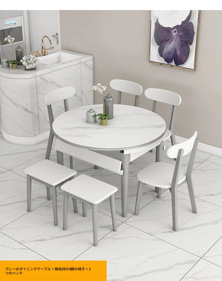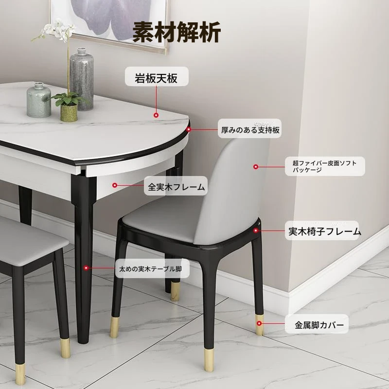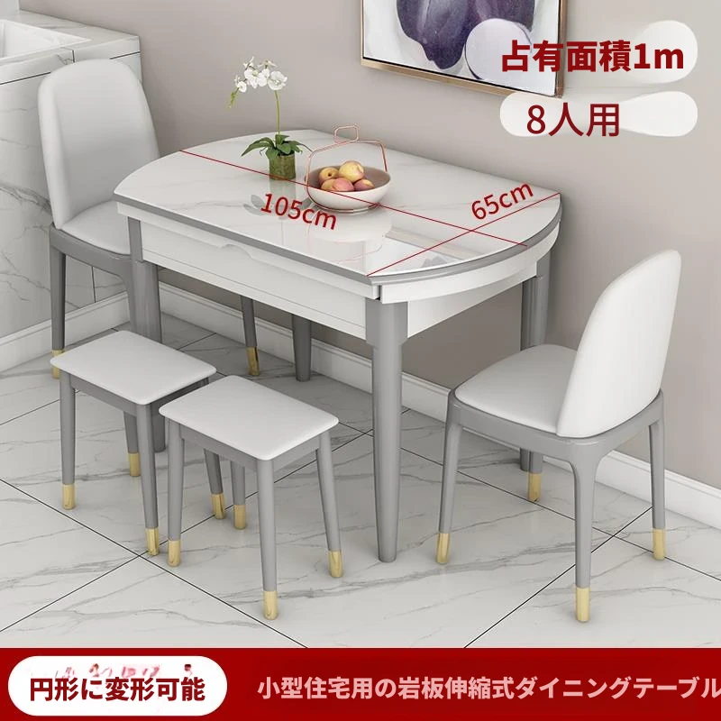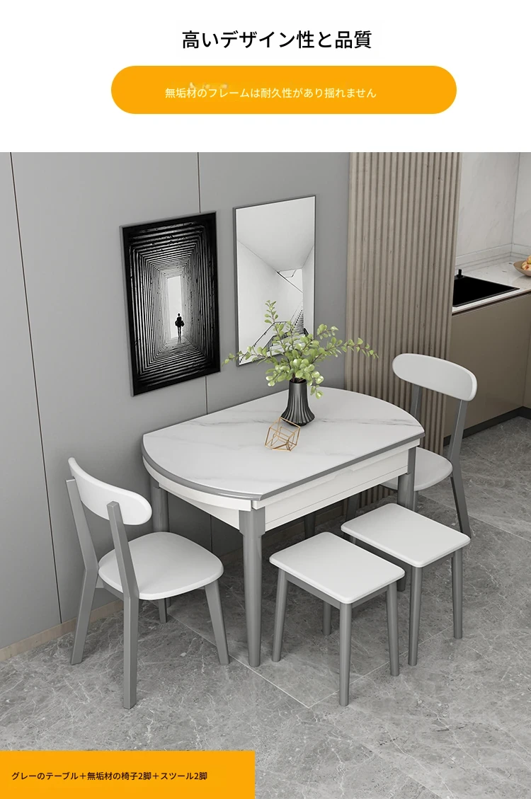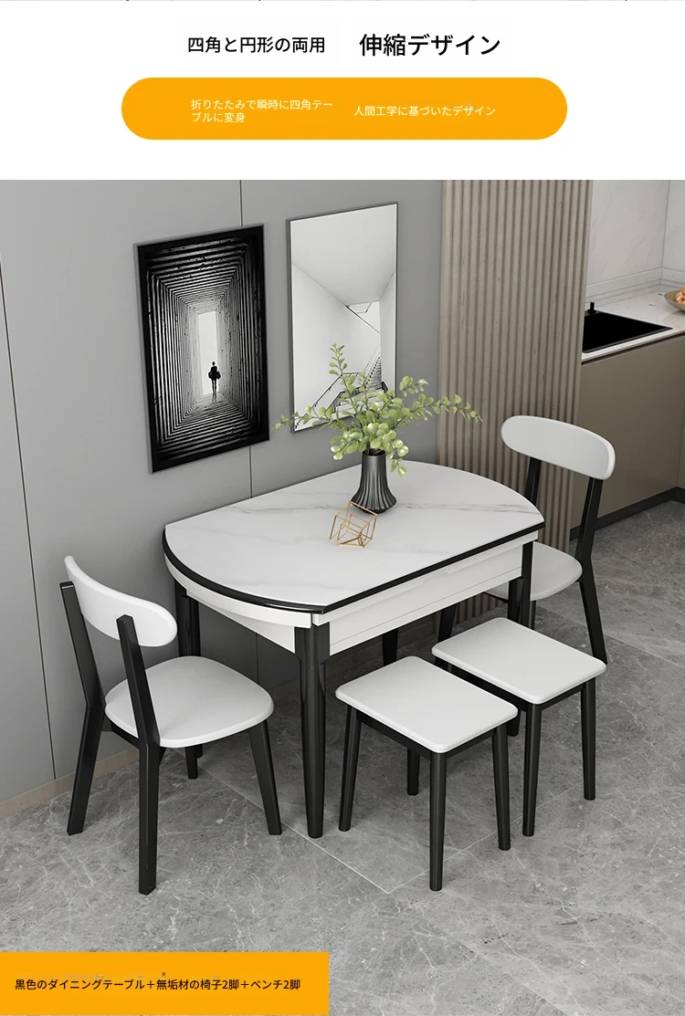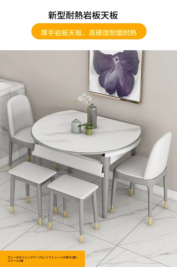 [香港送料無料] モダンでシンプルな岩板ダイニングテーブル - 小型住宅に最適!高級感あふれる実木製、折りたたみ式&伸縮可能で多機能。家族や友人との楽しい食事を演出します!