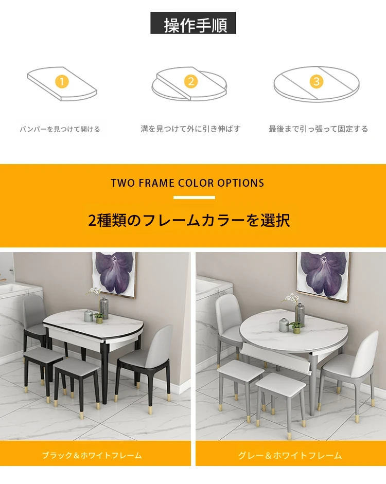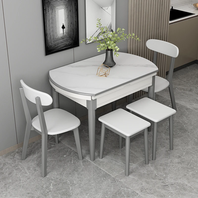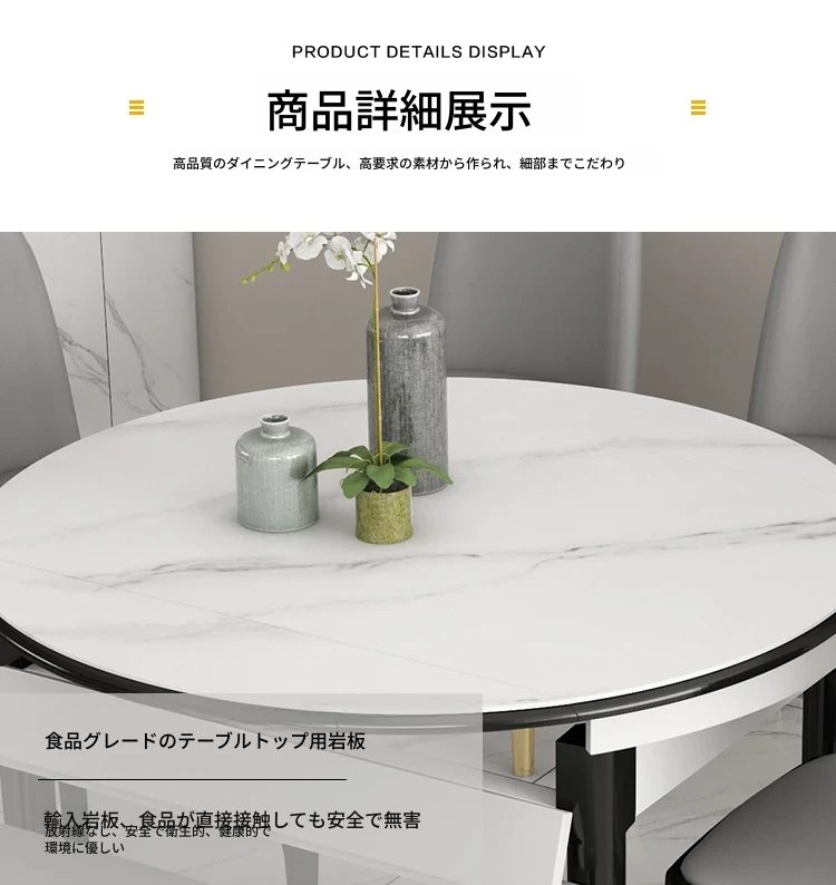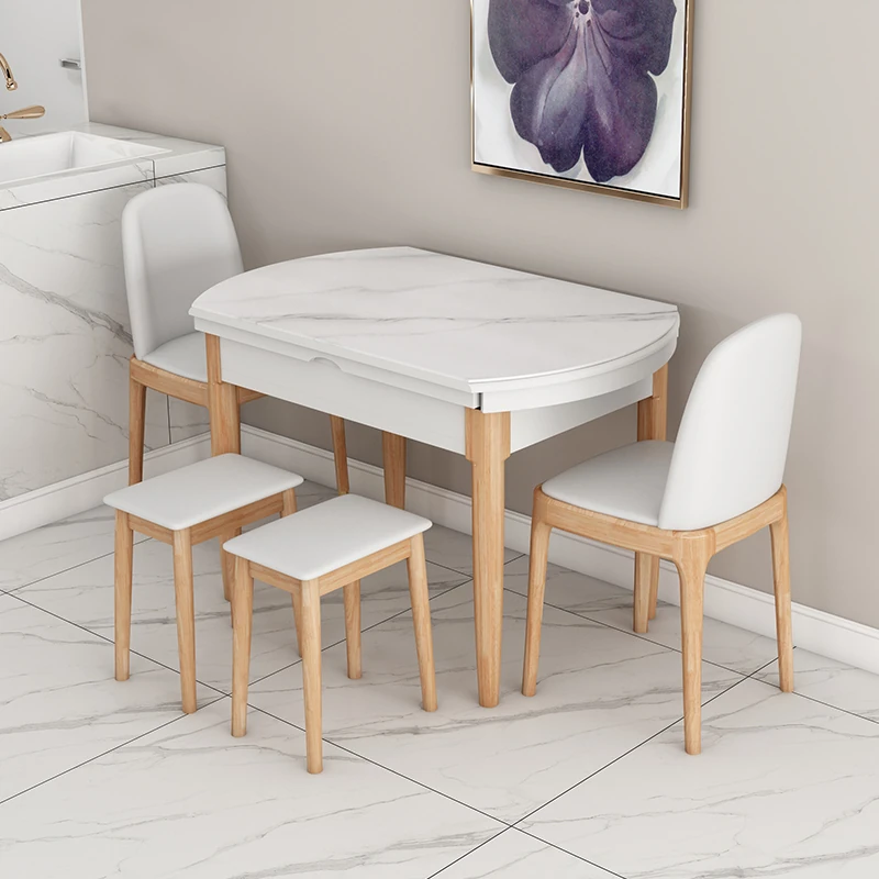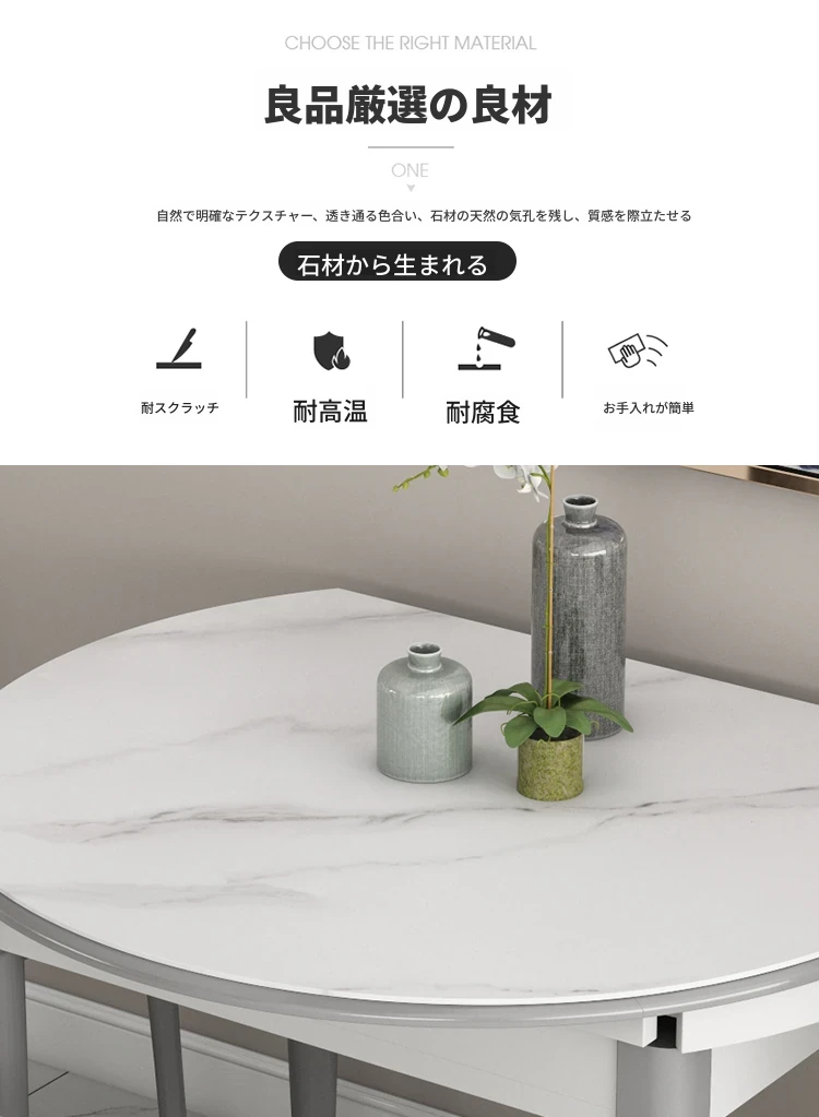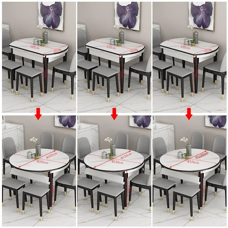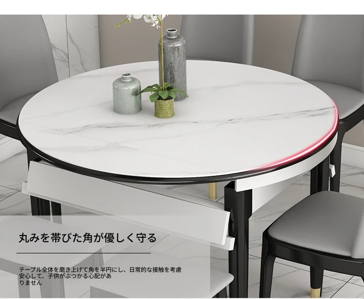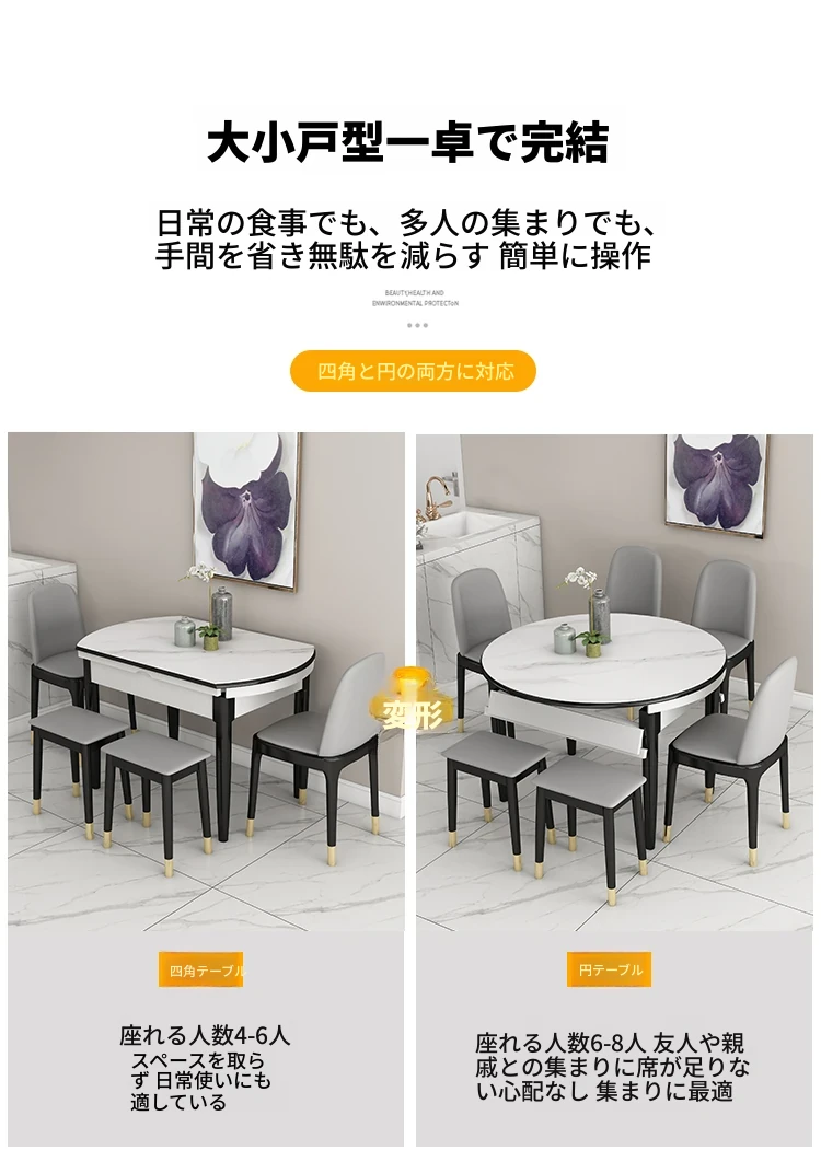 [香港送料無料] モダンでシンプルな岩板ダイニングテーブル - 小型住宅に最適!高級感あふれる実木製、折りたたみ式&伸縮可能で多機能。家族や友人との楽しい食事を演出します!