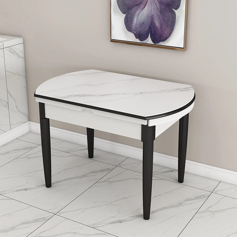 [岩板]1.05メートル伸縮テーブル(黒白色)