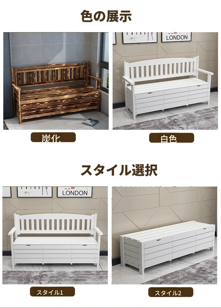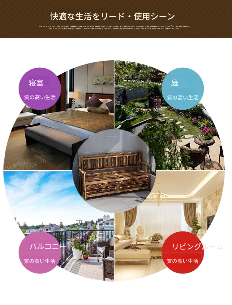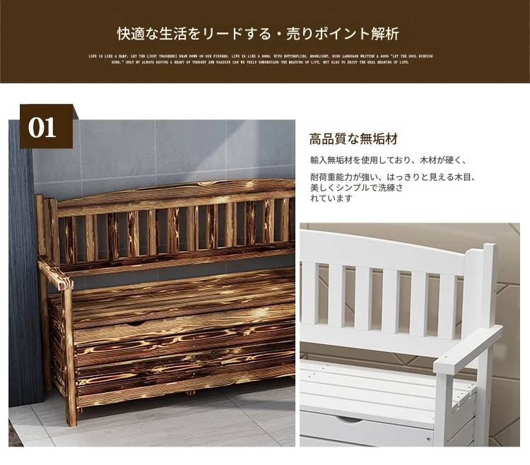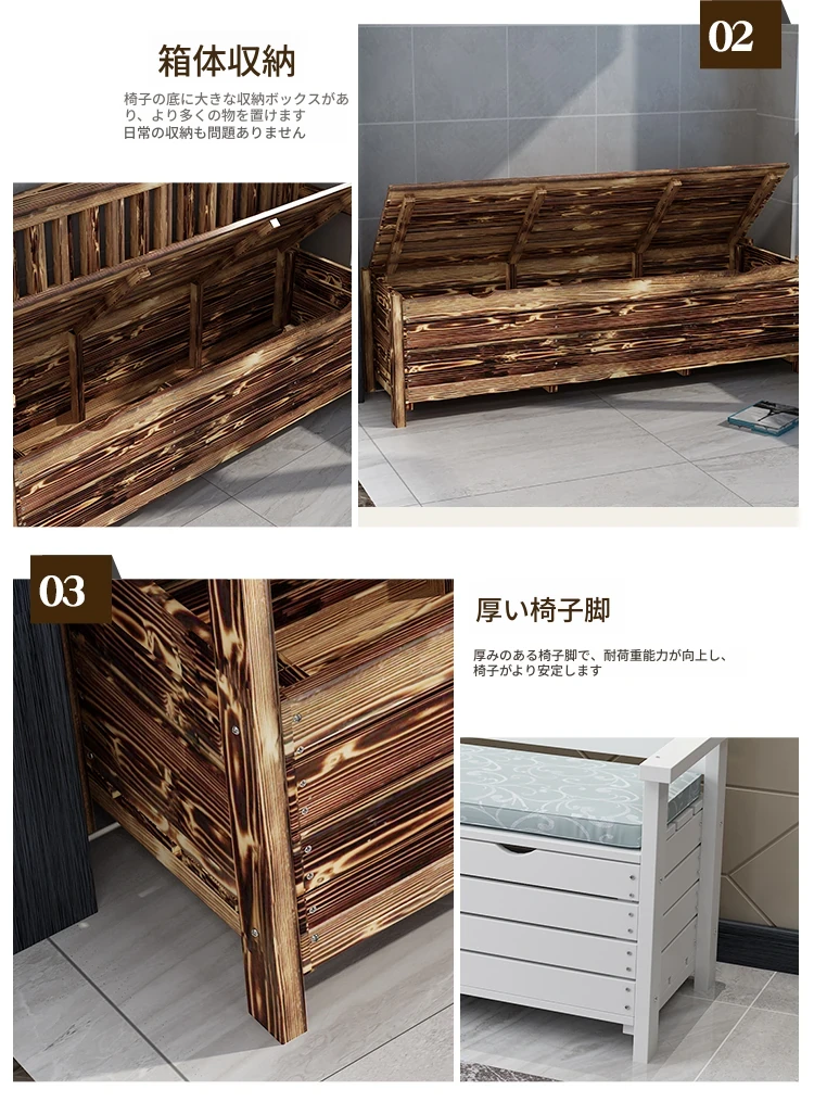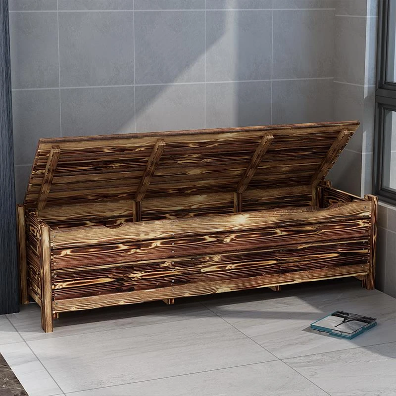 [香港送料無料] 高級天然木製ロングベンチ!バルコニー収納付き炭化ソファ1人用、アウトドア庭園用アームレスト付き背もたれ。快適なひとときをお楽しみください!