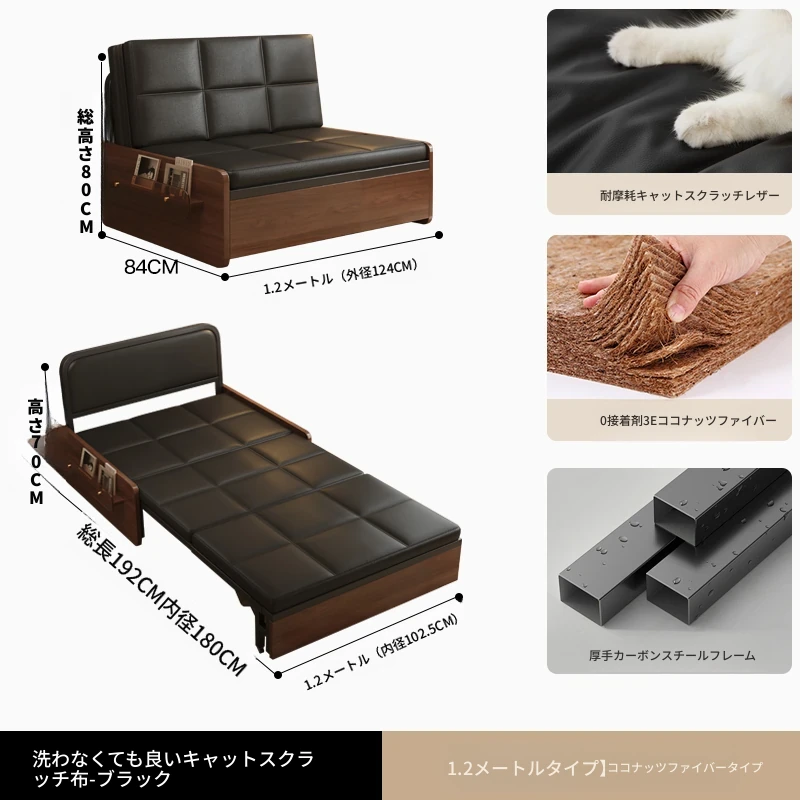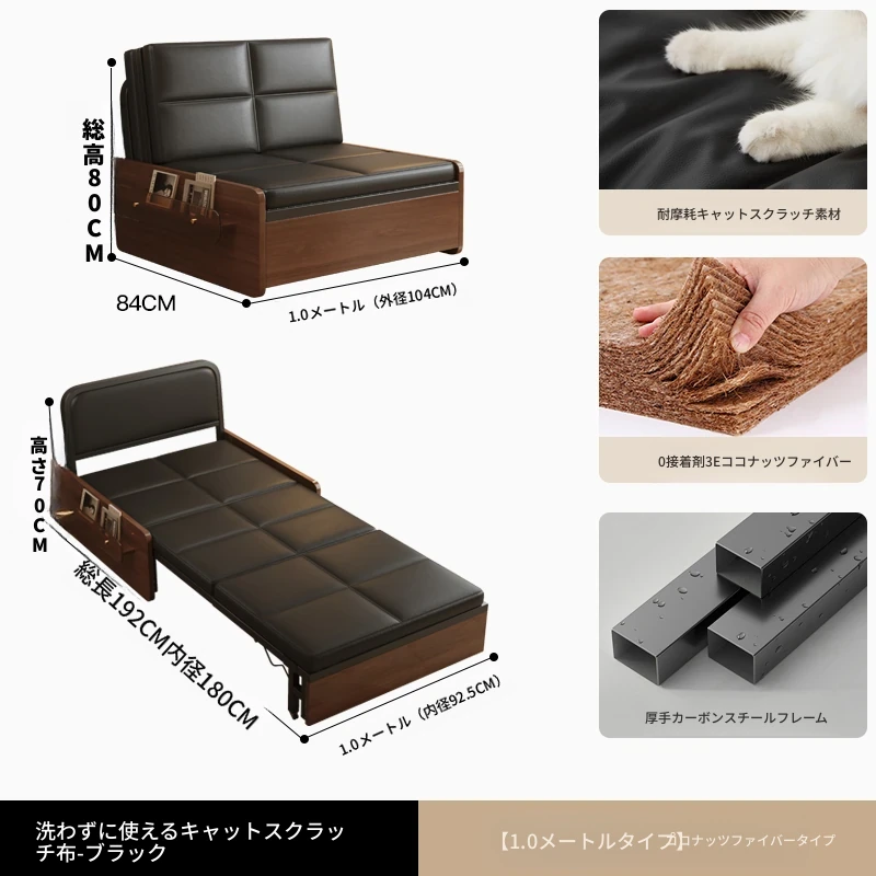【耐磨猫爪皮|護脊ココナッツ】1.2m-レトロブラック(自分で取り付け)
