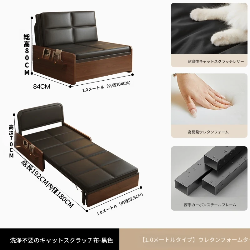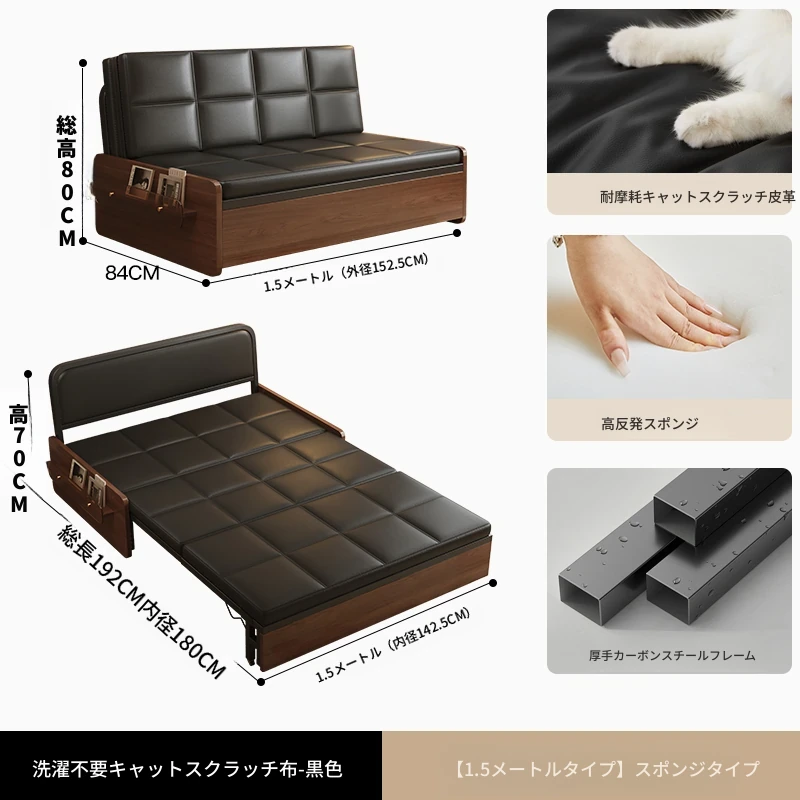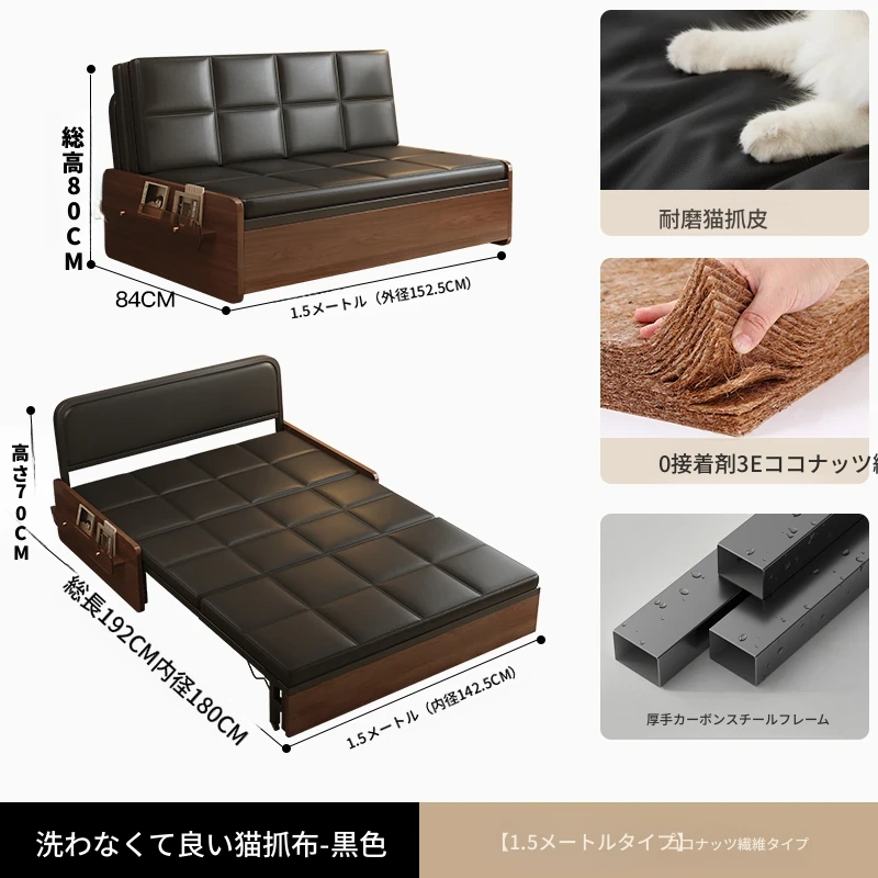 【耐磨猫爪皮|護脊ココナッツ】1.5m-レトロブラック(自分で取り付け)