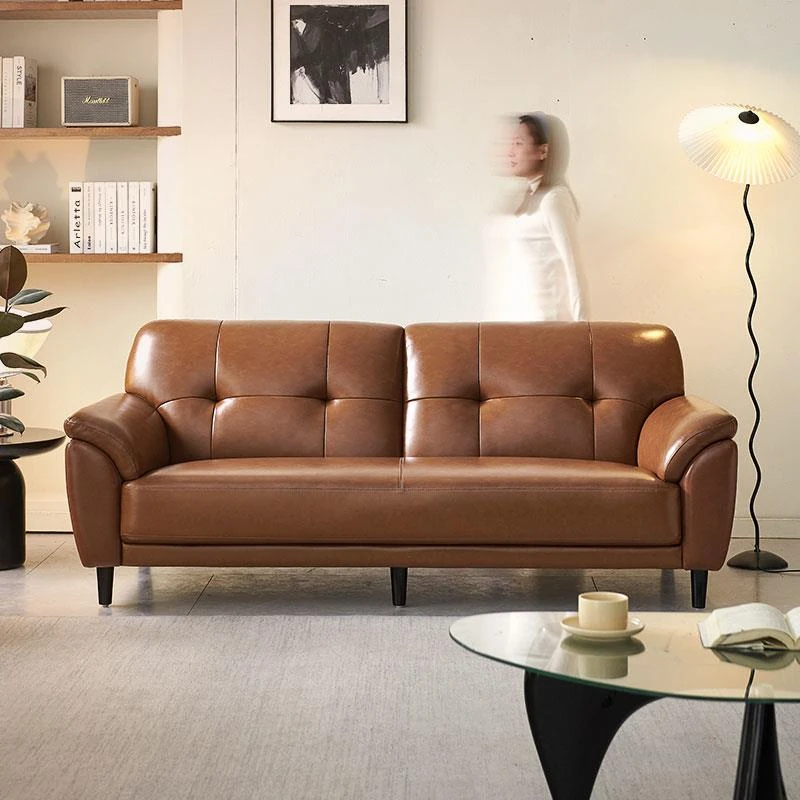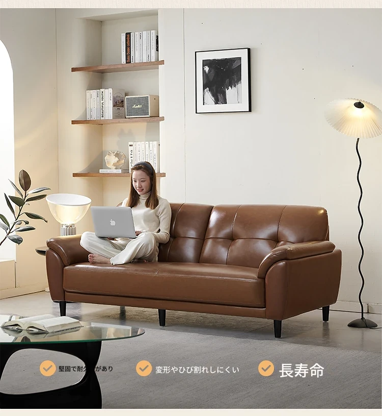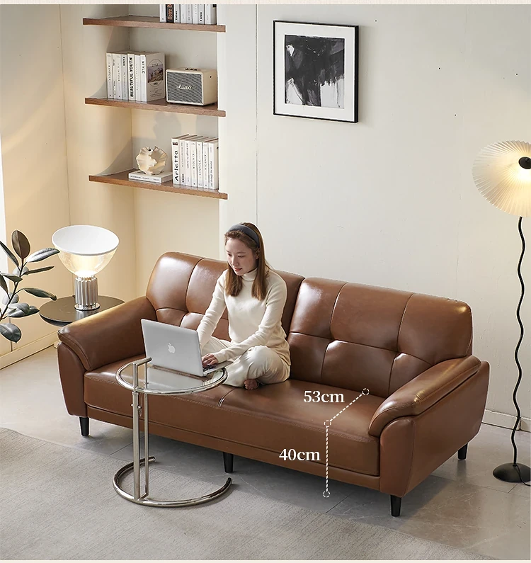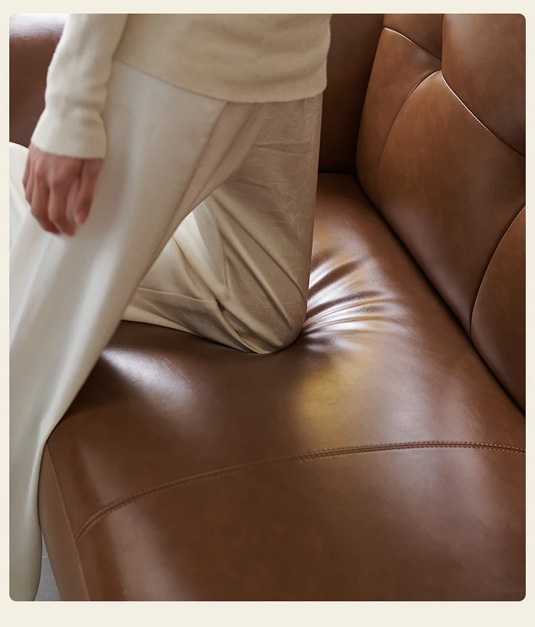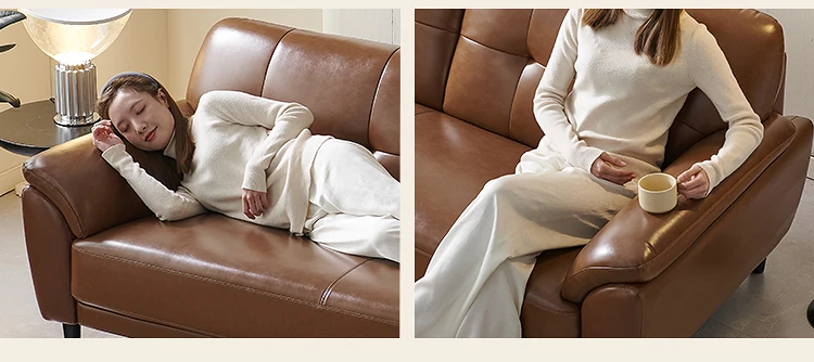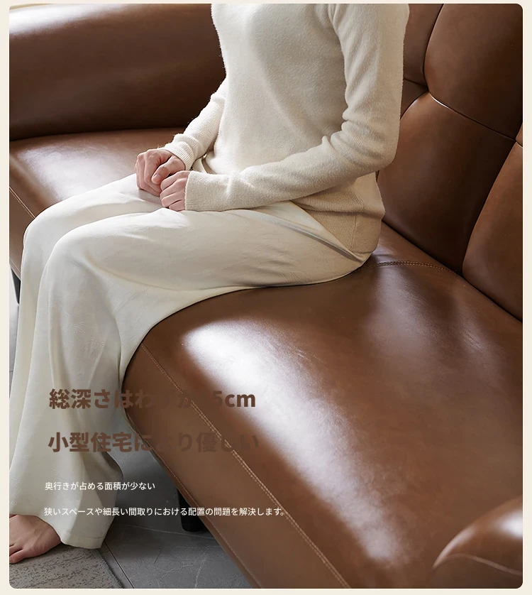 【香港送料無料】2025新作!レトロオイルワックス本革ソファ - コンパクトなお部屋にもぴったり!ブラウンの二人掛けリビング用、スタイリッシュなデザインで快適なひとときを。