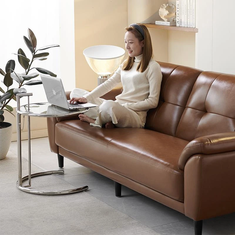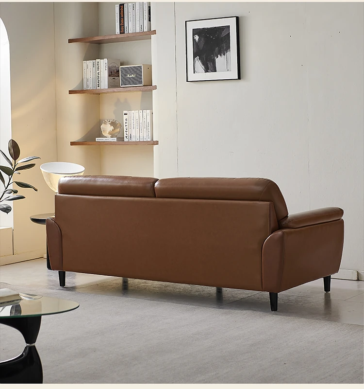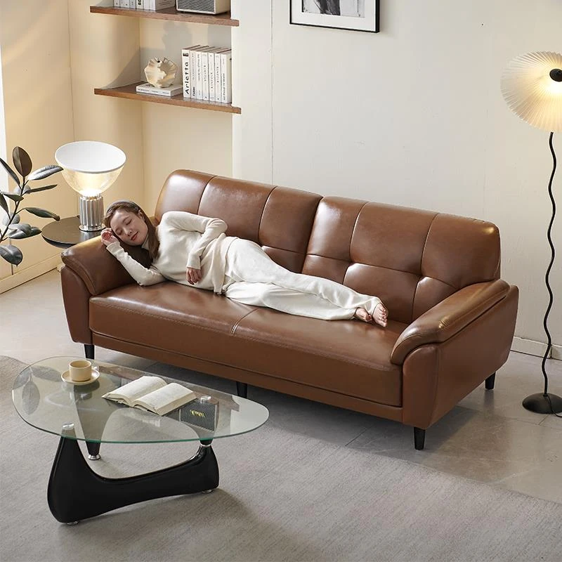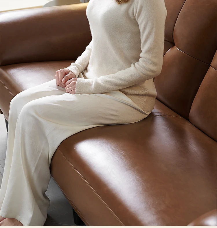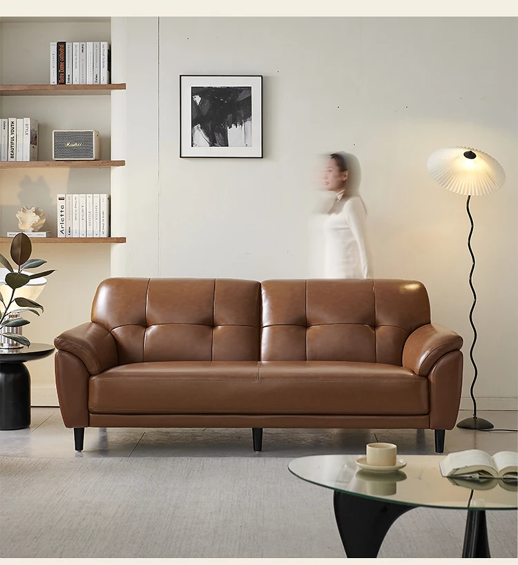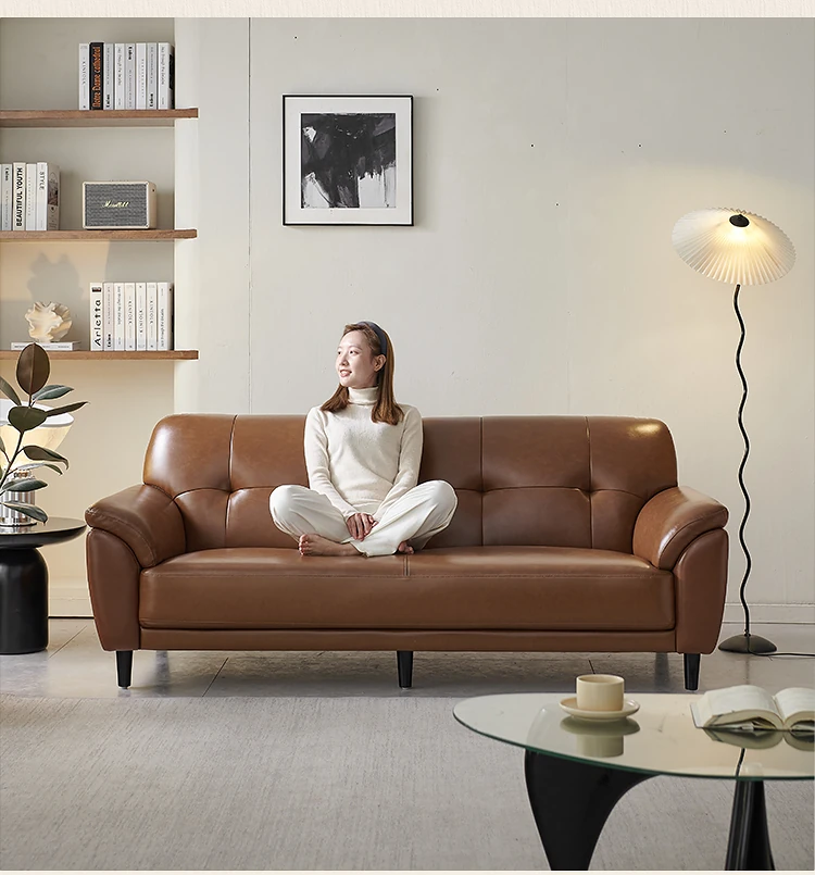 【香港送料無料】2025新作!レトロオイルワックス本革ソファ - コンパクトなお部屋にもぴったり!ブラウンの二人掛けリビング用、スタイリッシュなデザインで快適なひとときを。