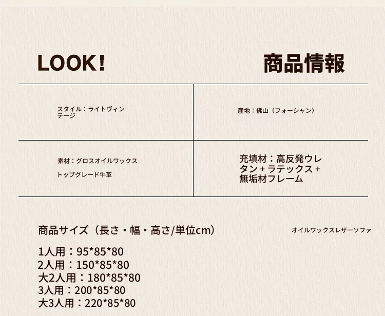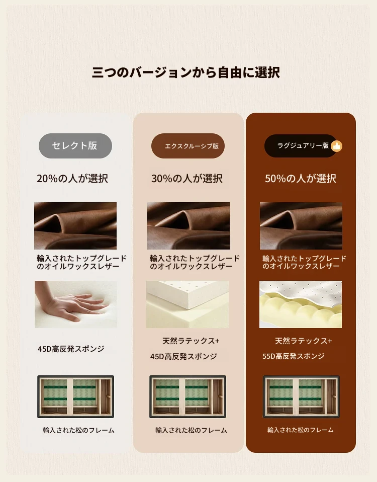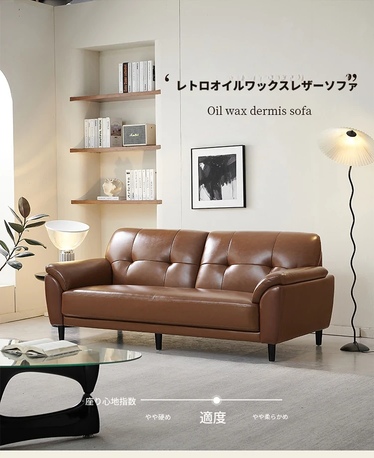 【ラグジュアリー】三人用1.8メートル【オイルワックス牛革】 ラテックス+55Dスポンジ+松のフレーム