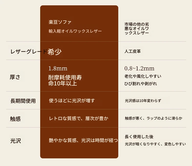 【ラグジュアリー】四人用2.0メートル【オイルワックス牛革】 ラテックス+55Dスポンジ+松のフレーム