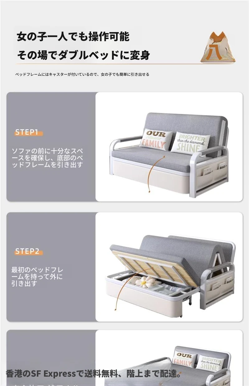 【香港送料無料】おしゃれな折りたたみソファベッド!狭いお部屋にぴったりな一人用ベッド。バルコニーでも大活躍する多機能デザインのダブルベッド!快適な眠りとスタイリッシュな空間を実現!