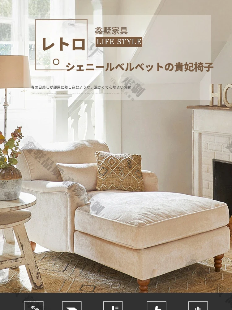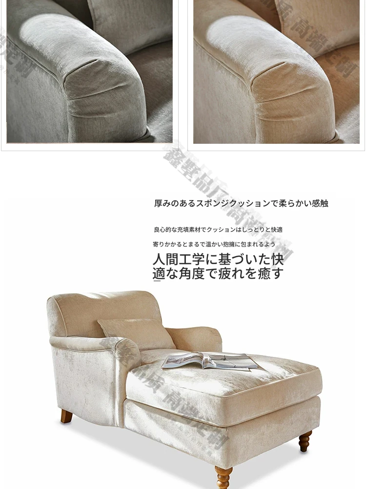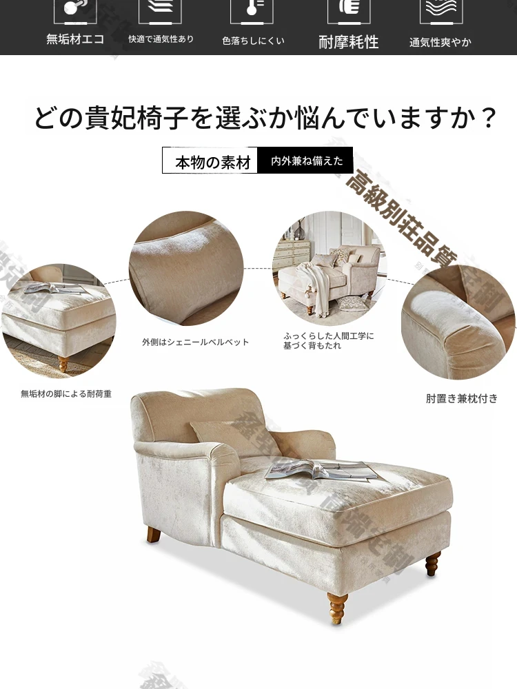 フランス風ファブリック製の貴妃ソファ!バルコニーやリビングにぴったりの美人座椅子。家庭用のリラックスできる一人掛けチェア、アメリカンスタイルのベッドサイド小ソファとしても最適です。優雅なデザインでくつろぎのひとときを!