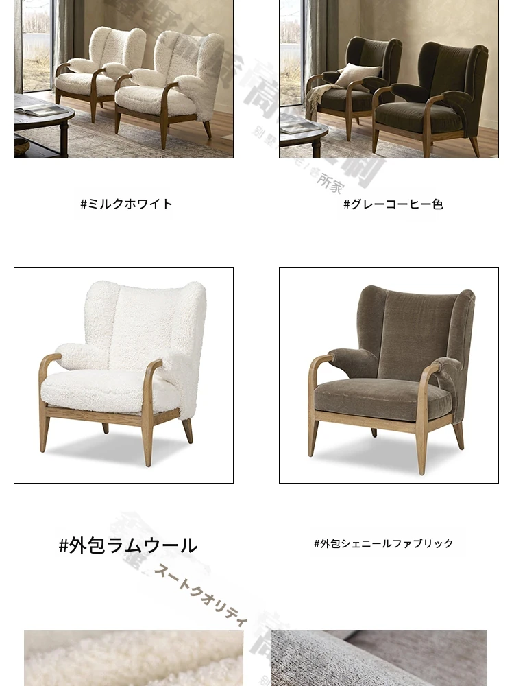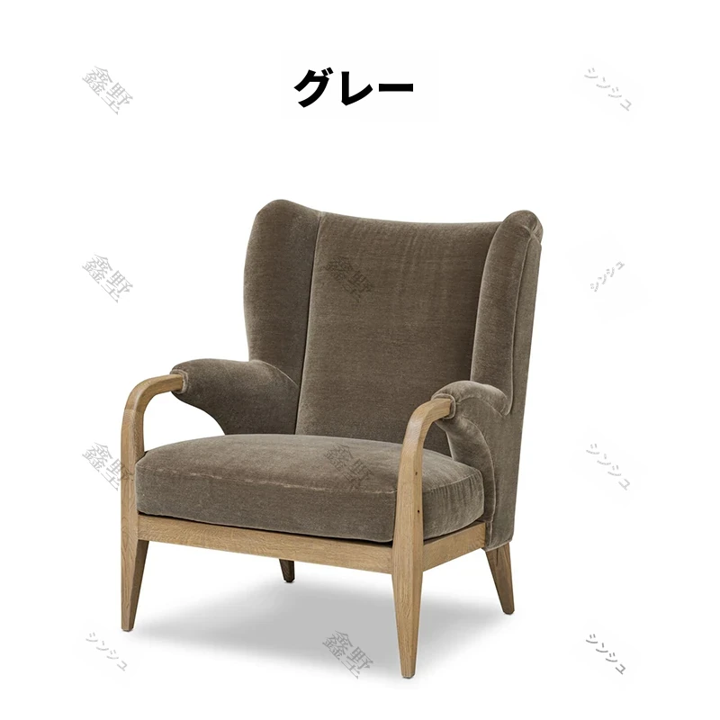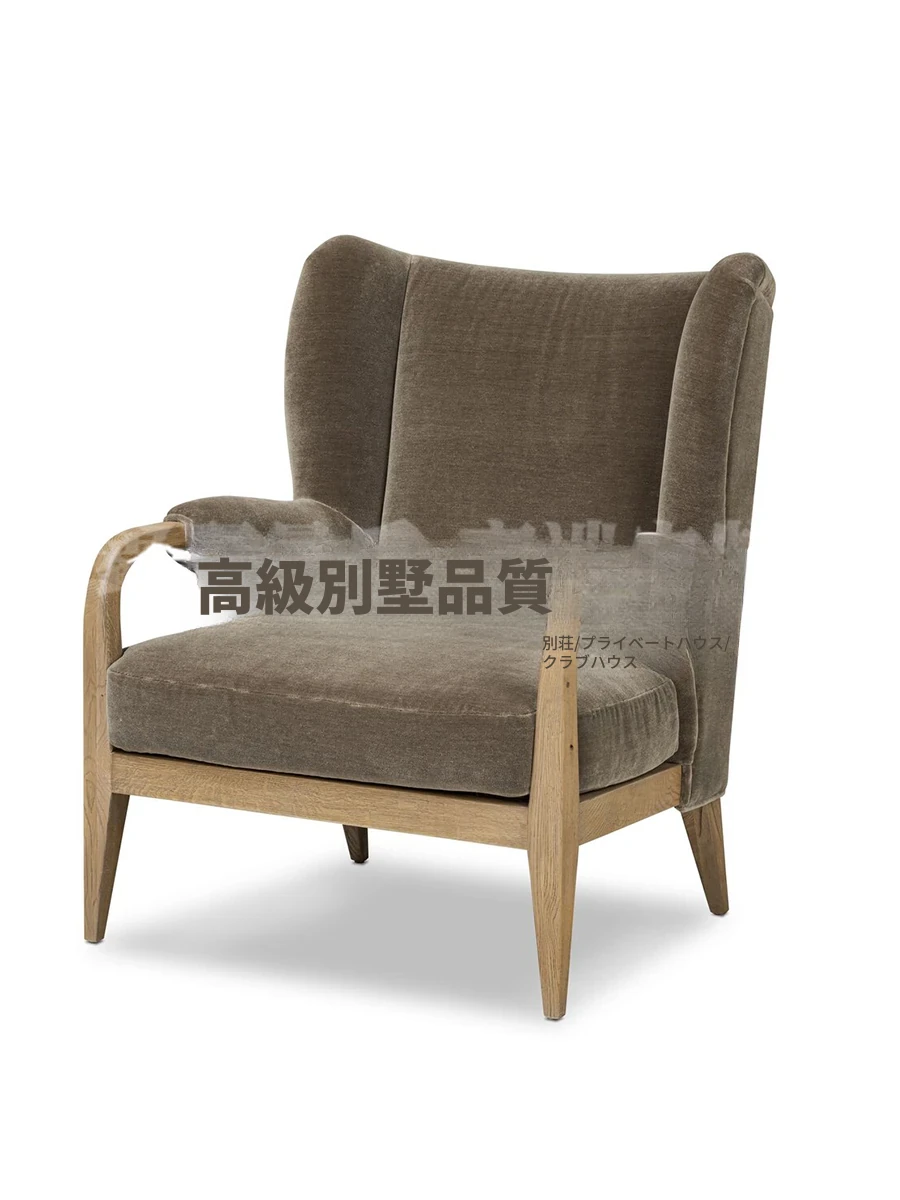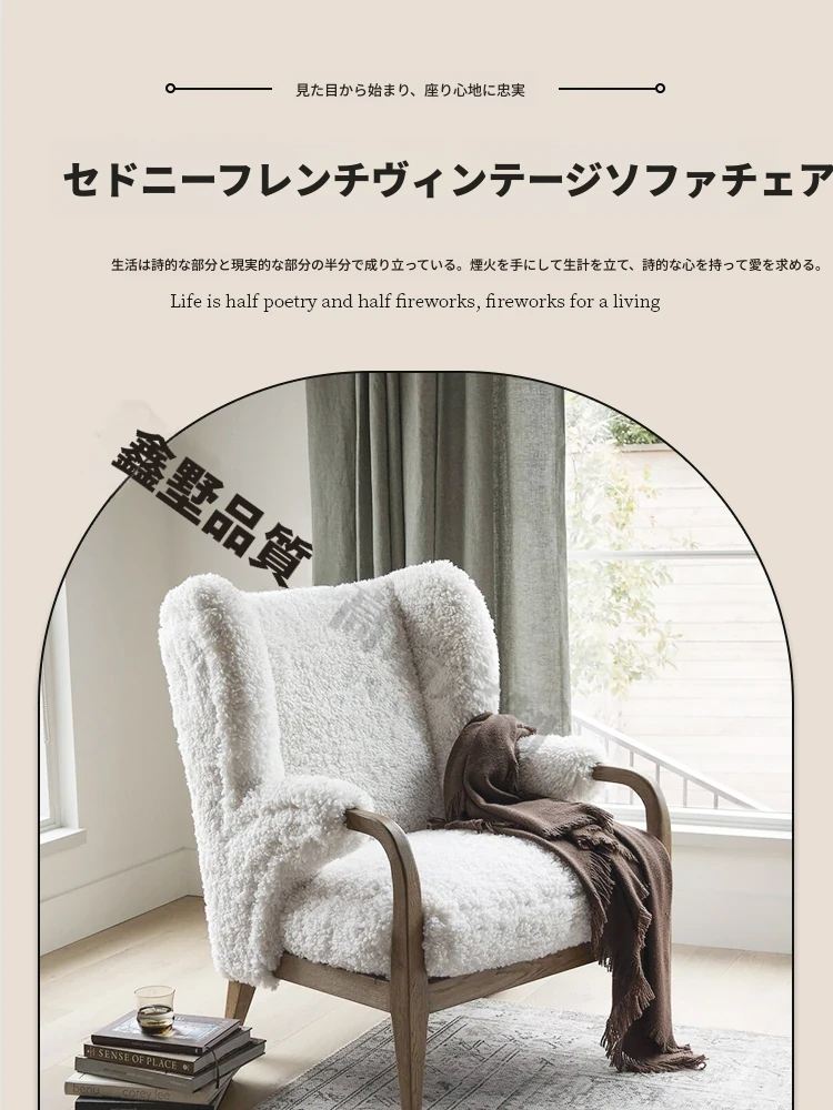 フランス風の無垢材ロングパイルソファチェア - 小型リビングにぴったりな布製のシングルチェア。アメリカンスタイルの書斎やバルコニーに最適なリラックスチェアです。おしゃれで快適な空間を演出します!
