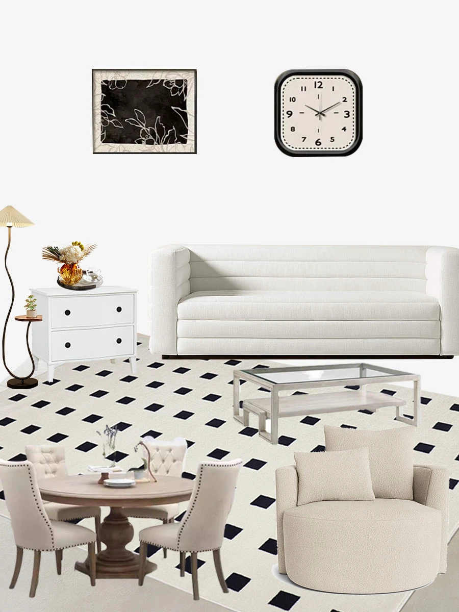 クリームカラーのファブリックソファ - イタリアンミニマリズムの極み、現代的なシンプルデザイン!直線的なスタイルが魅力のデザイナーズ中古民宿向け、アーチ型のユニークなフォルムでおしゃれなリビングを演出します。