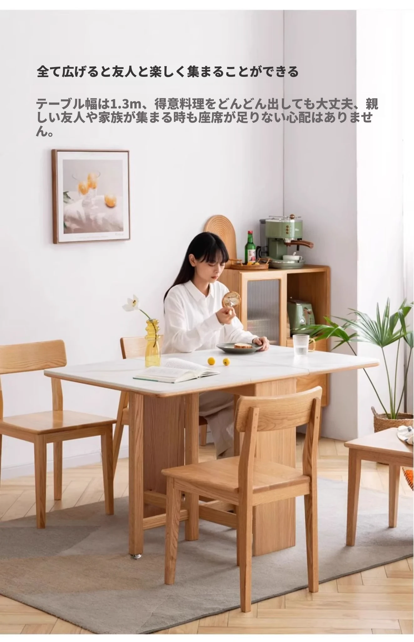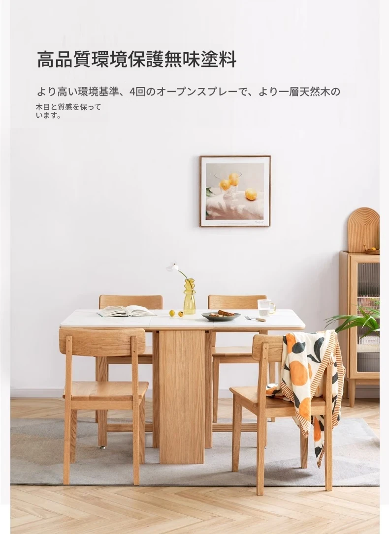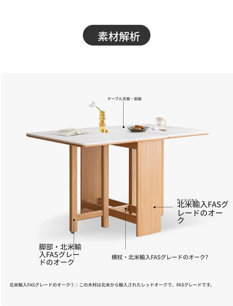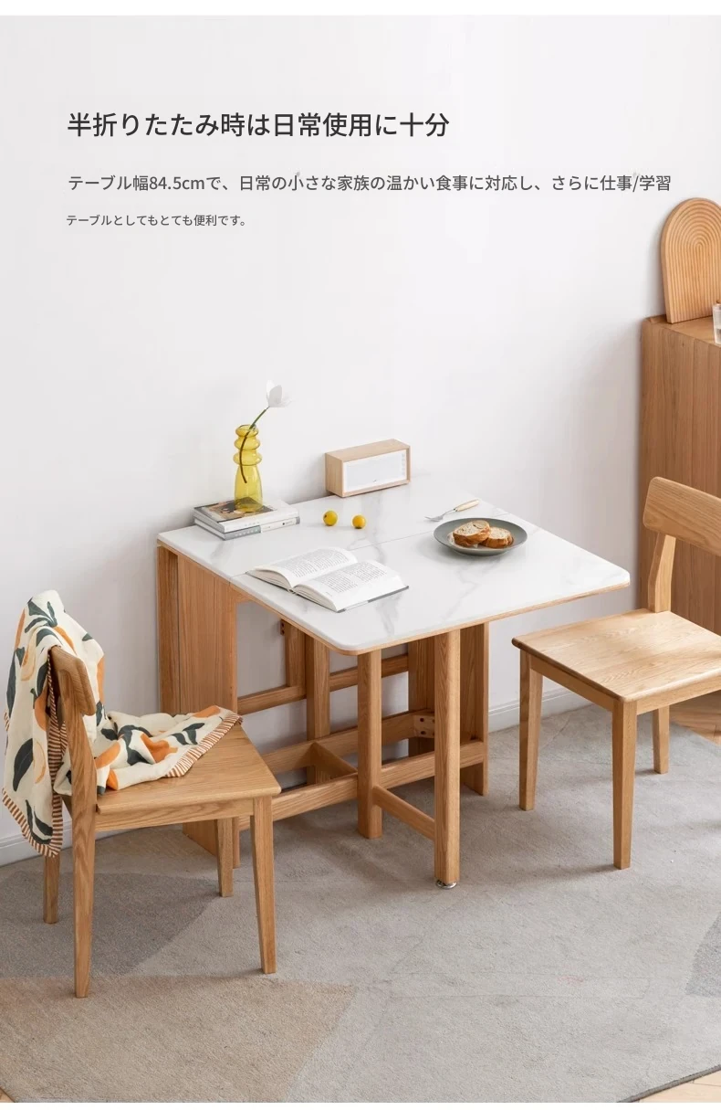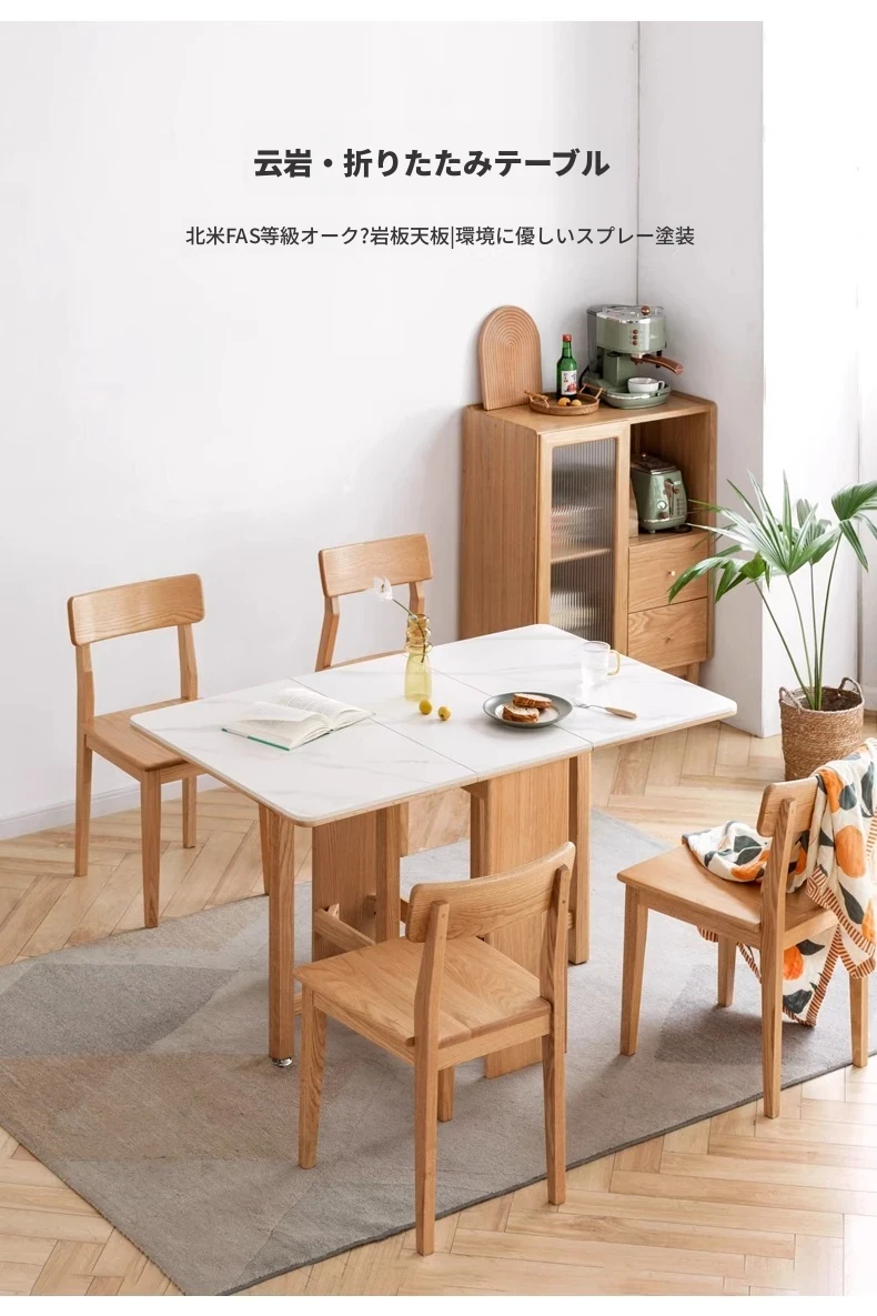 源氏木语 アナニ 全実木 岩板ダイニングテーブル オーク製 モダンミニマリスト 小型折り畳みテーブル 省スペースでスタイリッシュな食事空間を実現!