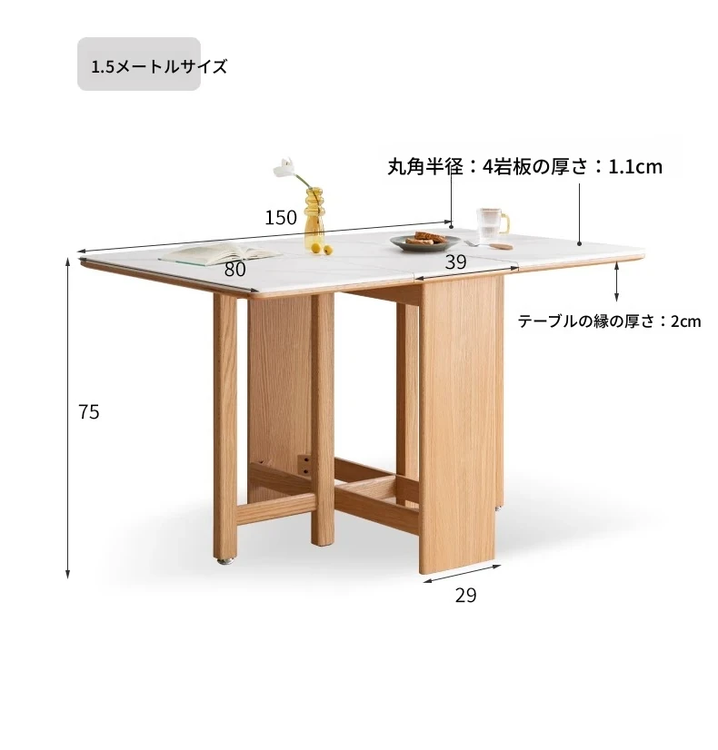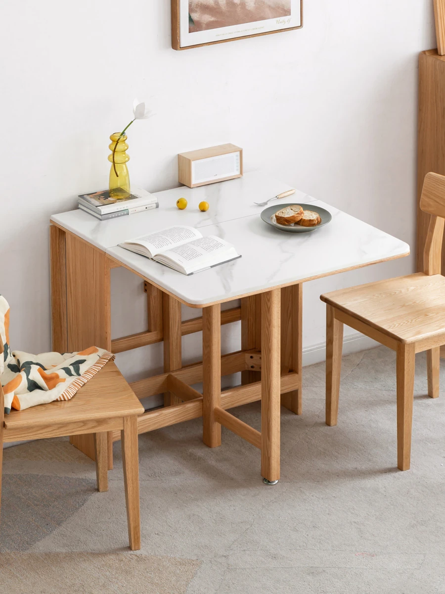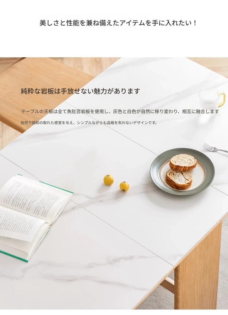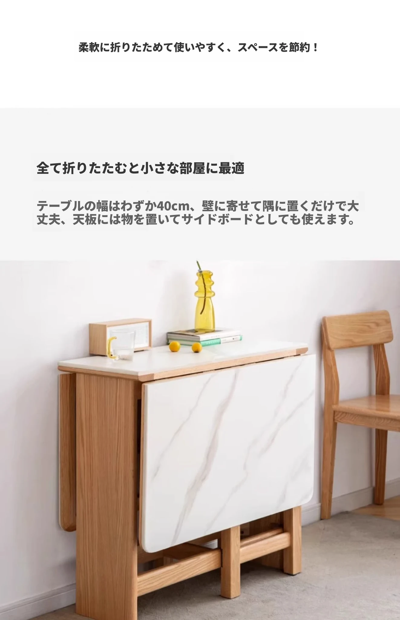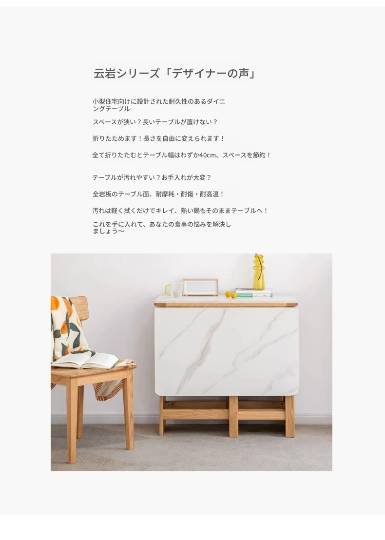 源氏木语 アナニ 全実木 岩板ダイニングテーブル オーク製 モダンミニマリスト 小型折り畳みテーブル 省スペースでスタイリッシュな食事空間を実現!