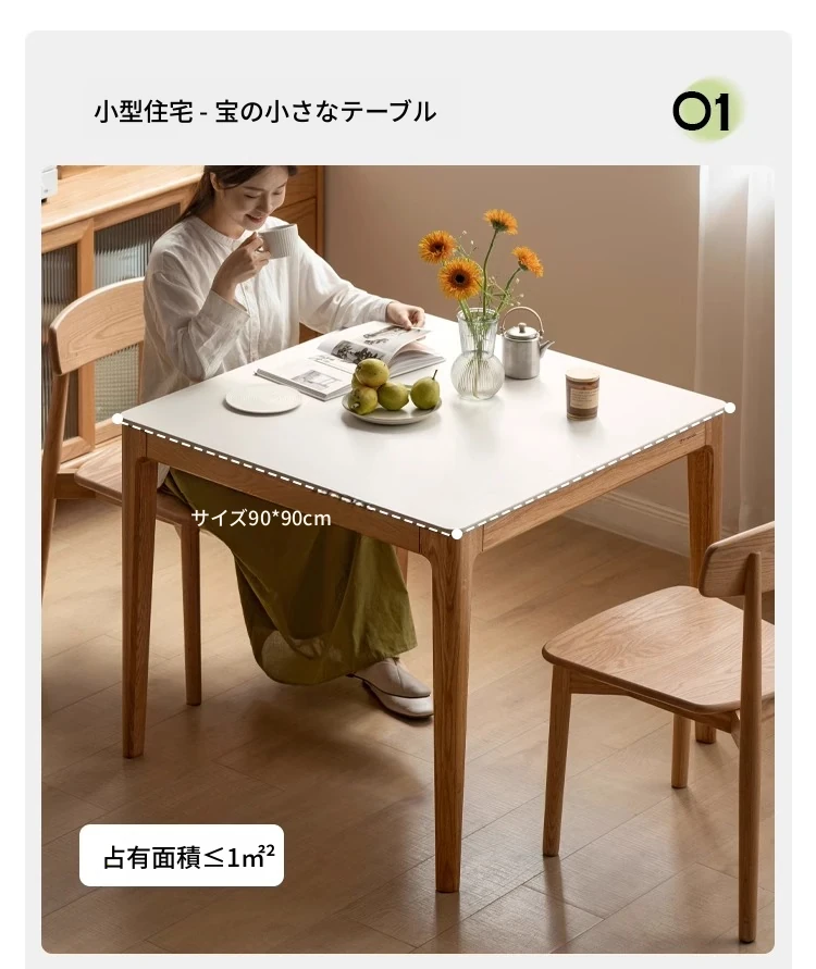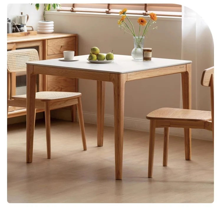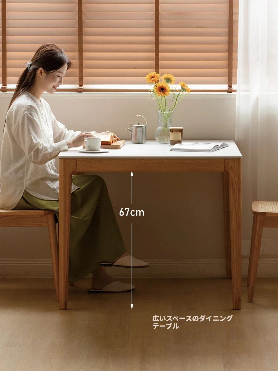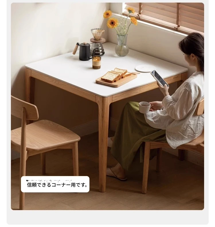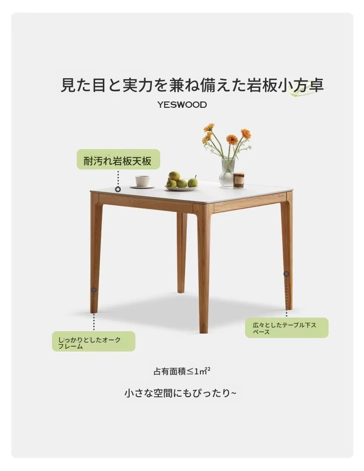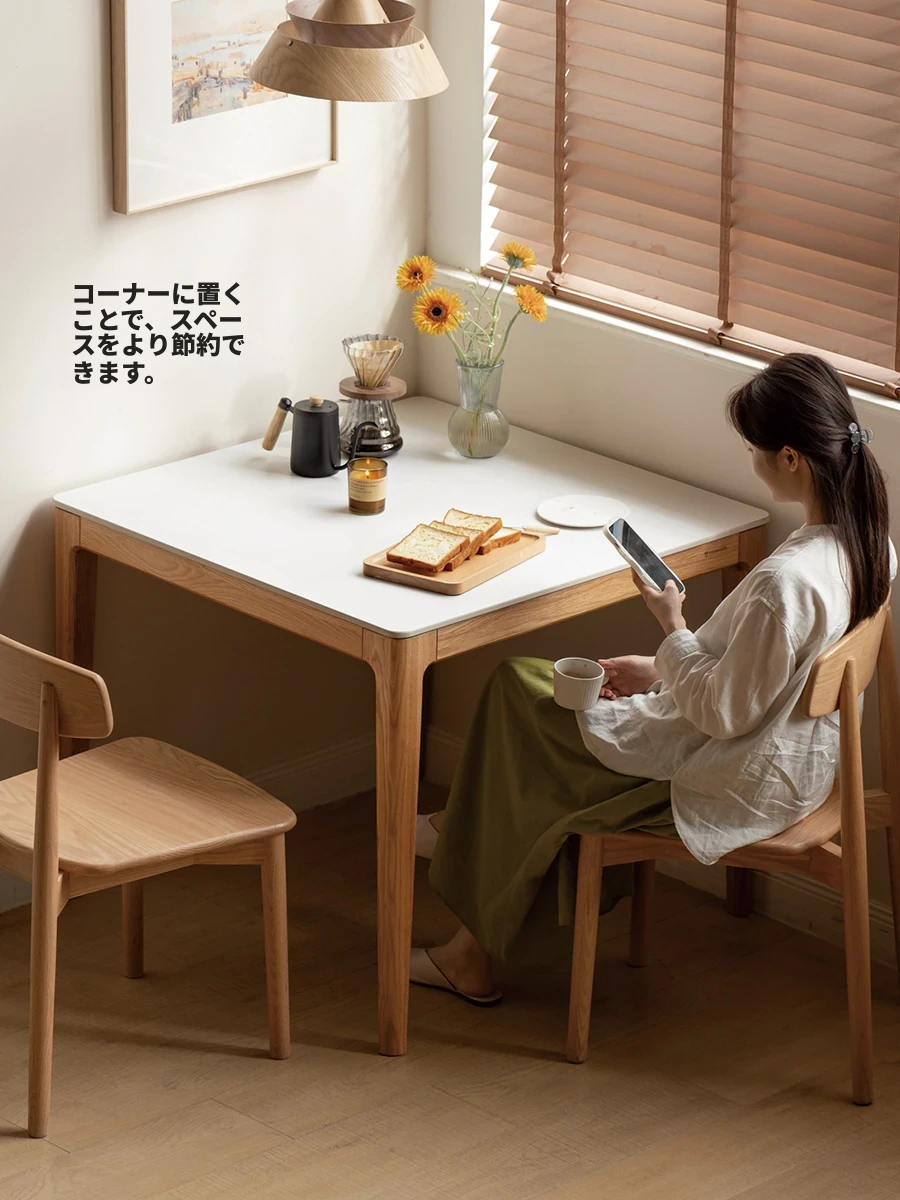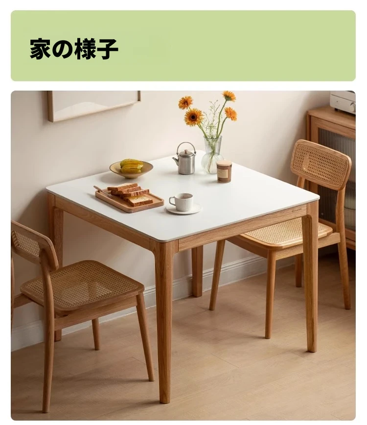 源氏木语 アナニ 天然木製 岩板 ダイニングテーブル シンプル 四角形 小型住宅向け 家庭用 テーブル 椅子セット