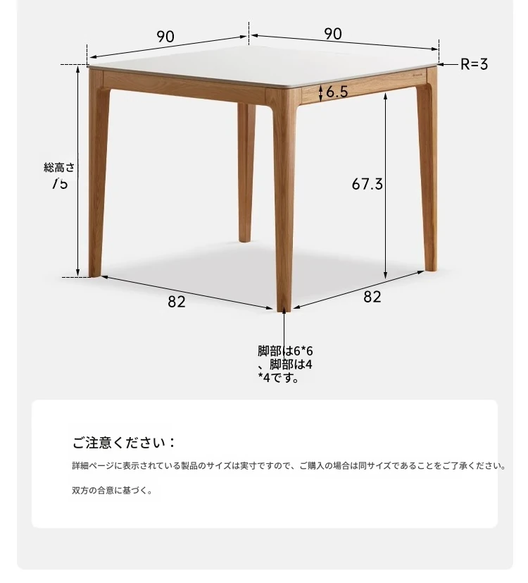 (ナチュラル色)0.9メートルアイボリー白岩板ダイニングテーブル(900*900*750mm)Y54R07
