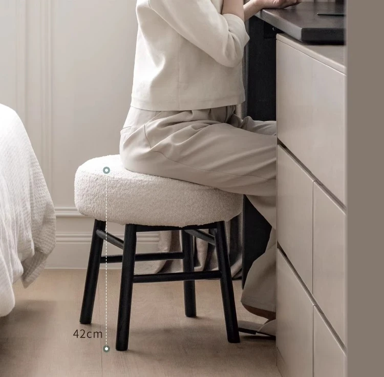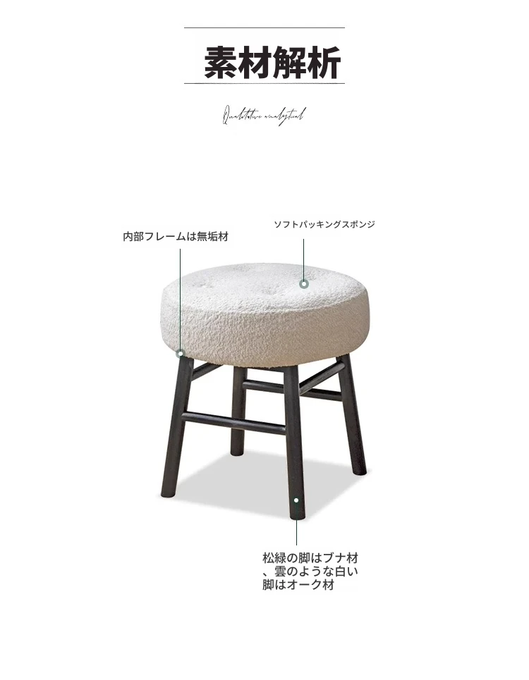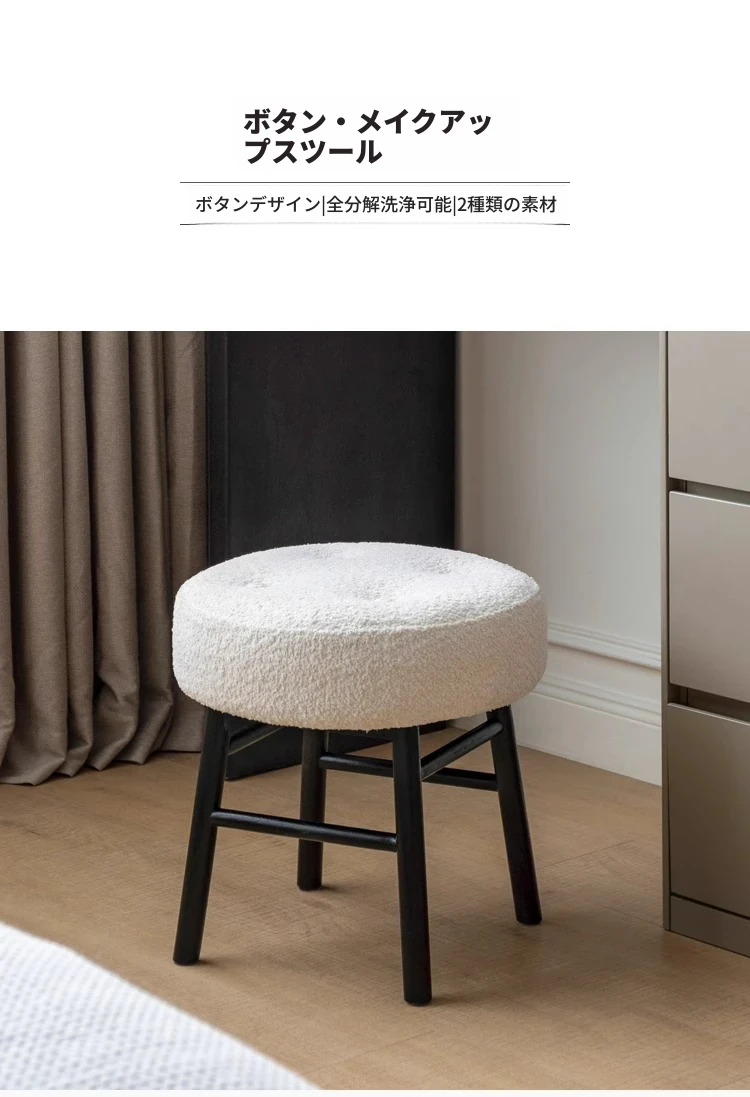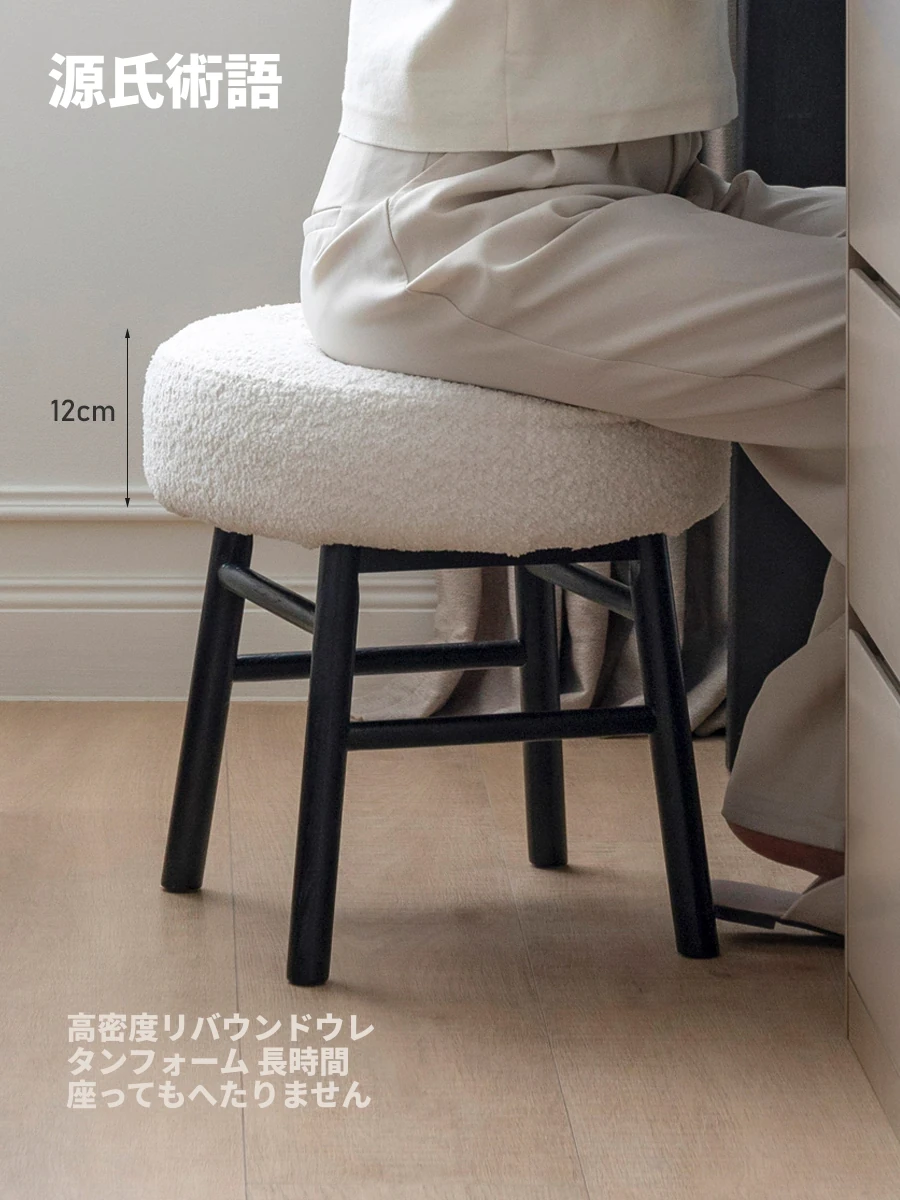 源氏木语 アナニ 無垢材 メイクアップスツール コスメティックスツール クリーム風 ホワイト ラウンドスツール 寝室用 ドレッサー チェア 玄関用スツールで、美しさと快適さを両立させましょう!