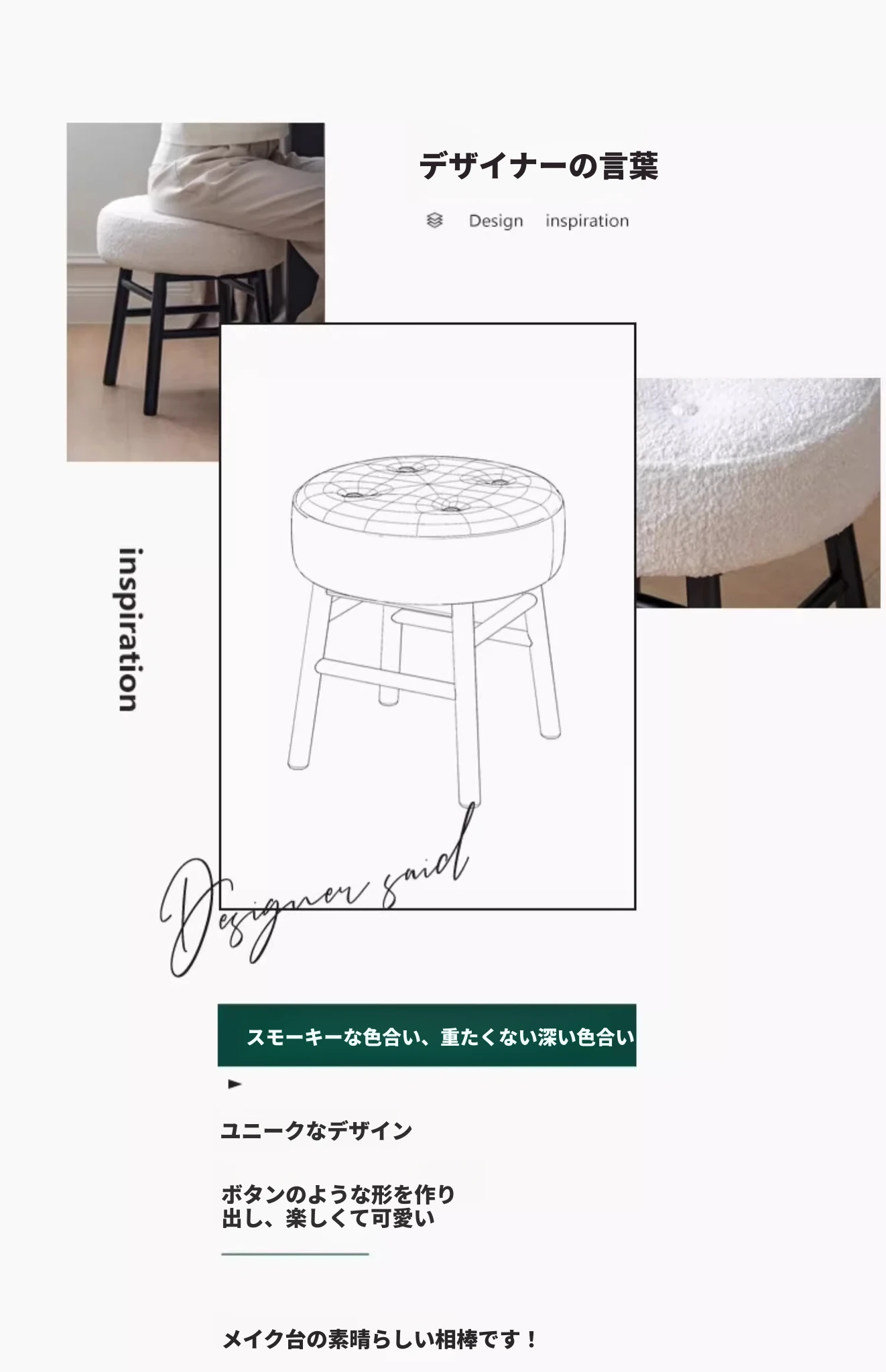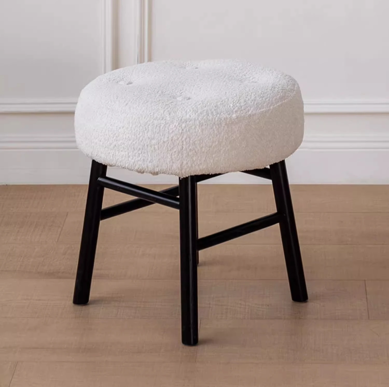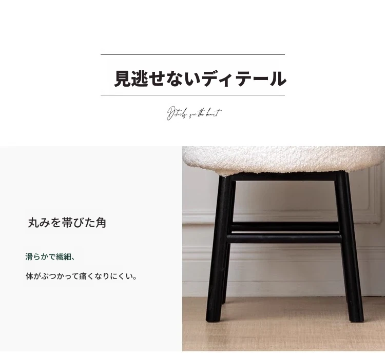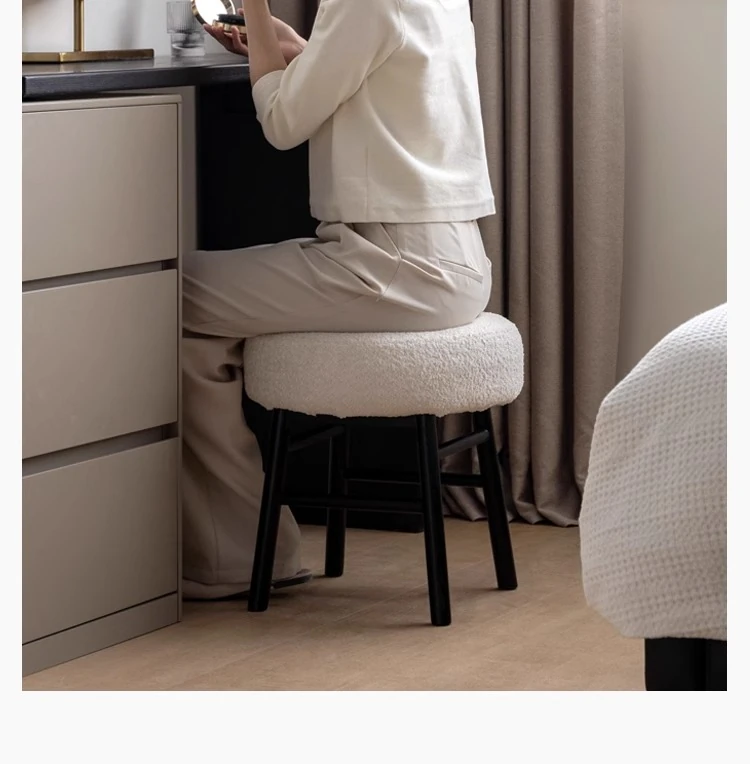 源氏木语 アナニ 無垢材 メイクアップスツール コスメティックスツール クリーム風 ホワイト ラウンドスツール 寝室用 ドレッサー チェア 玄関用スツールで、美しさと快適さを両立させましょう!