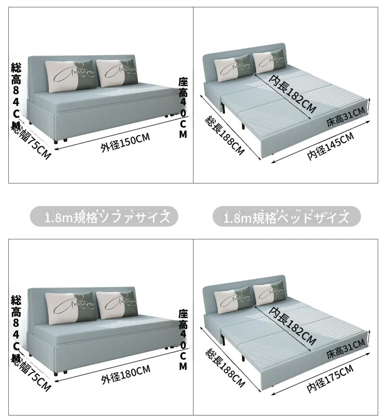1.8メートル【7CMウレタン+2CMラテックス】+収納