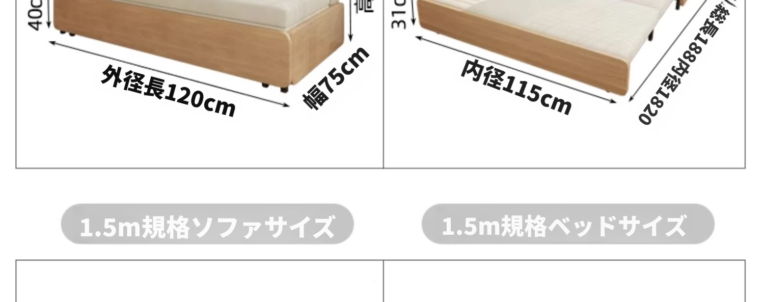 1.5メートル【7CMスポンジ+2CMココナッツ】+収納