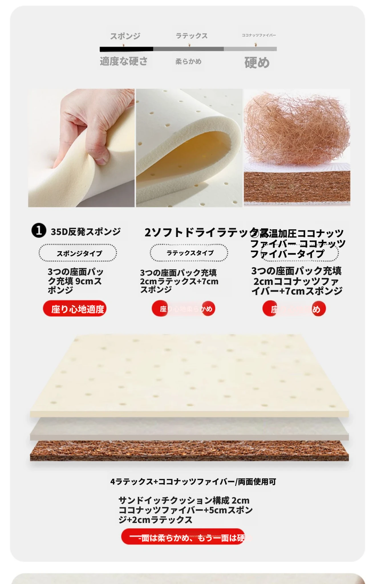 2.1メートル【ラテックス+ココナッツ/ソフトハード両面使用可】+収納