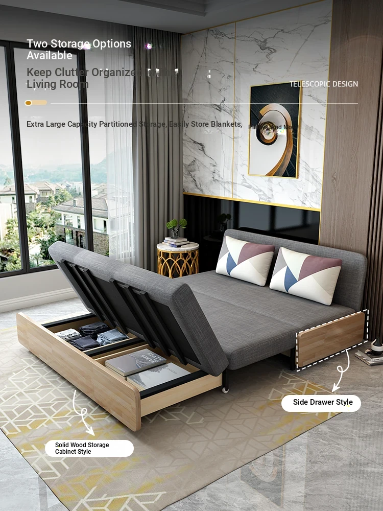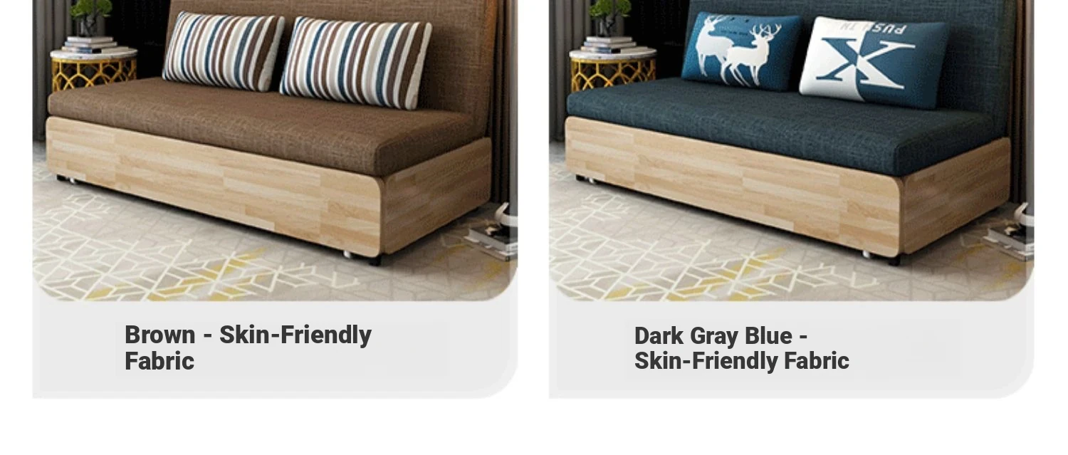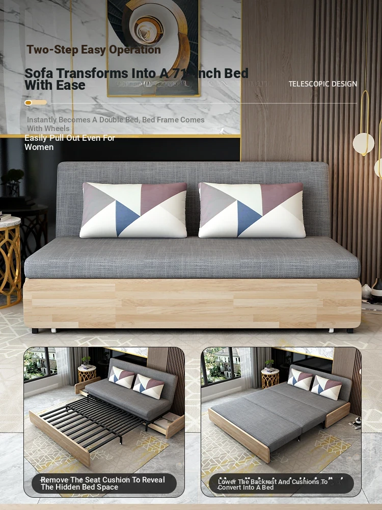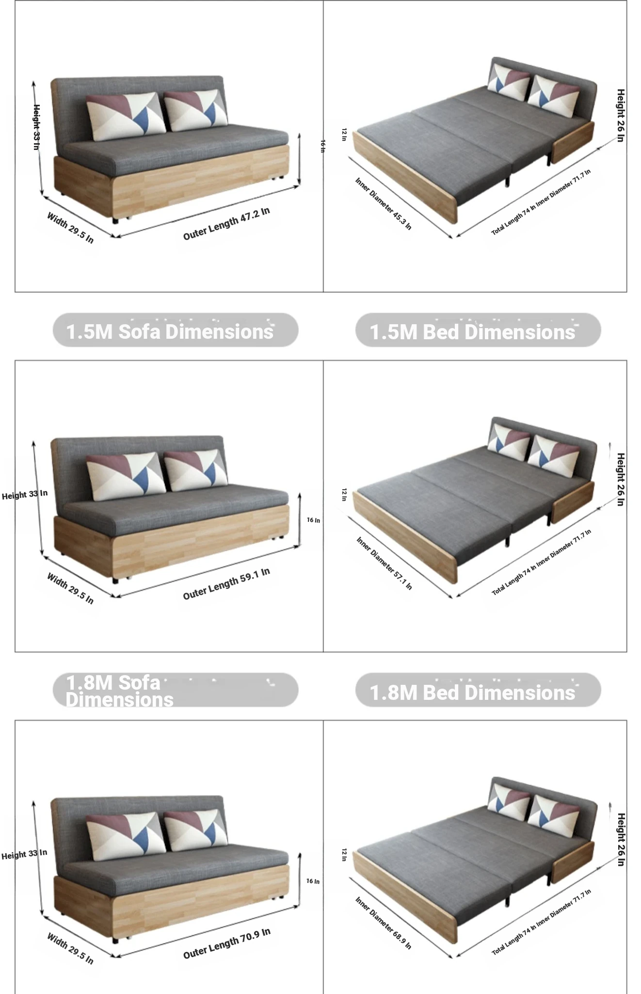 GREMOR Multifunctional Solid Wood Sofa Bed - 1.5m Natural Wood Style Dual-Use Folding Bed for Living Room and Balcony, Perfect for Couples and Space-Saving Solutions!