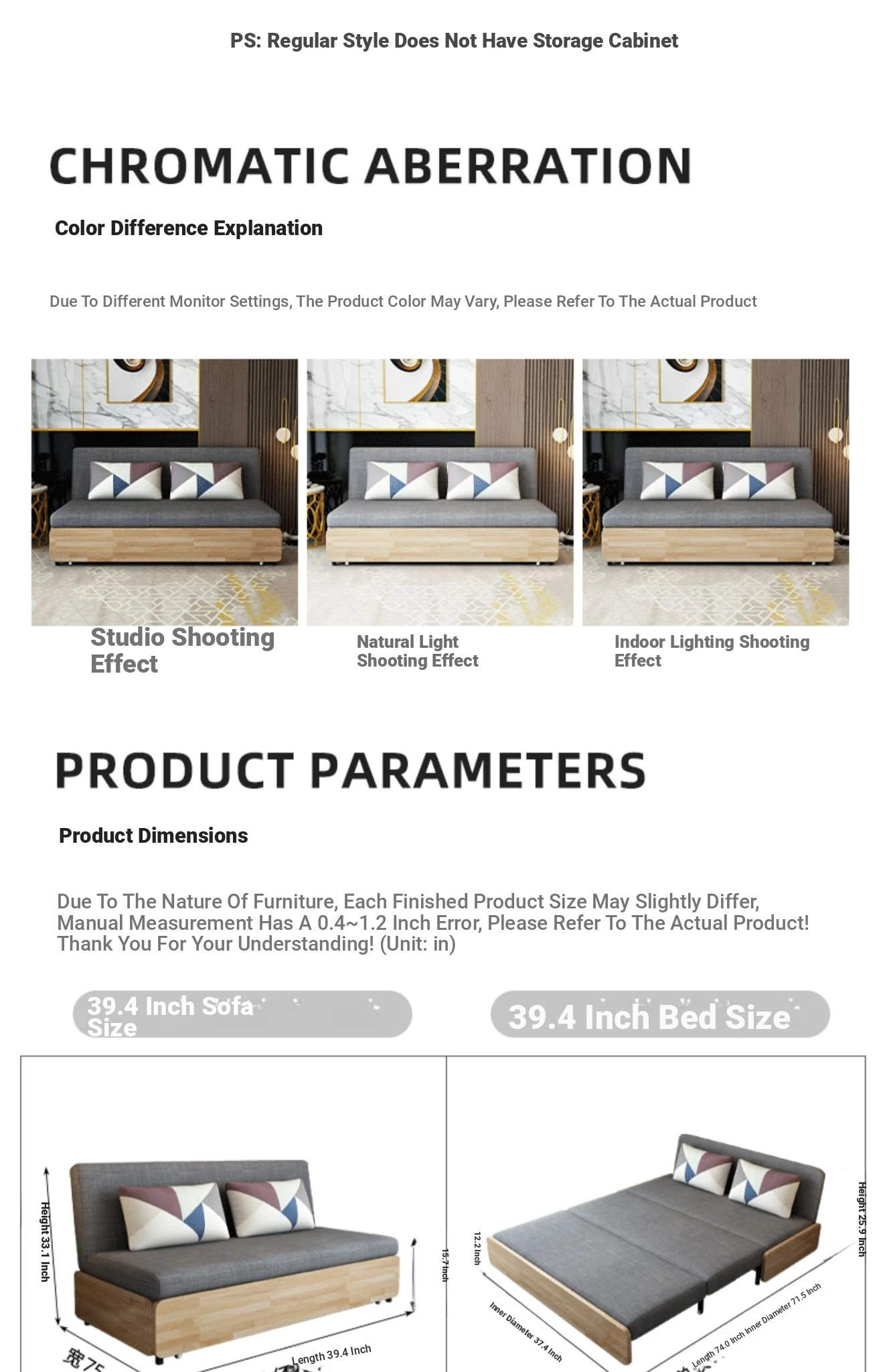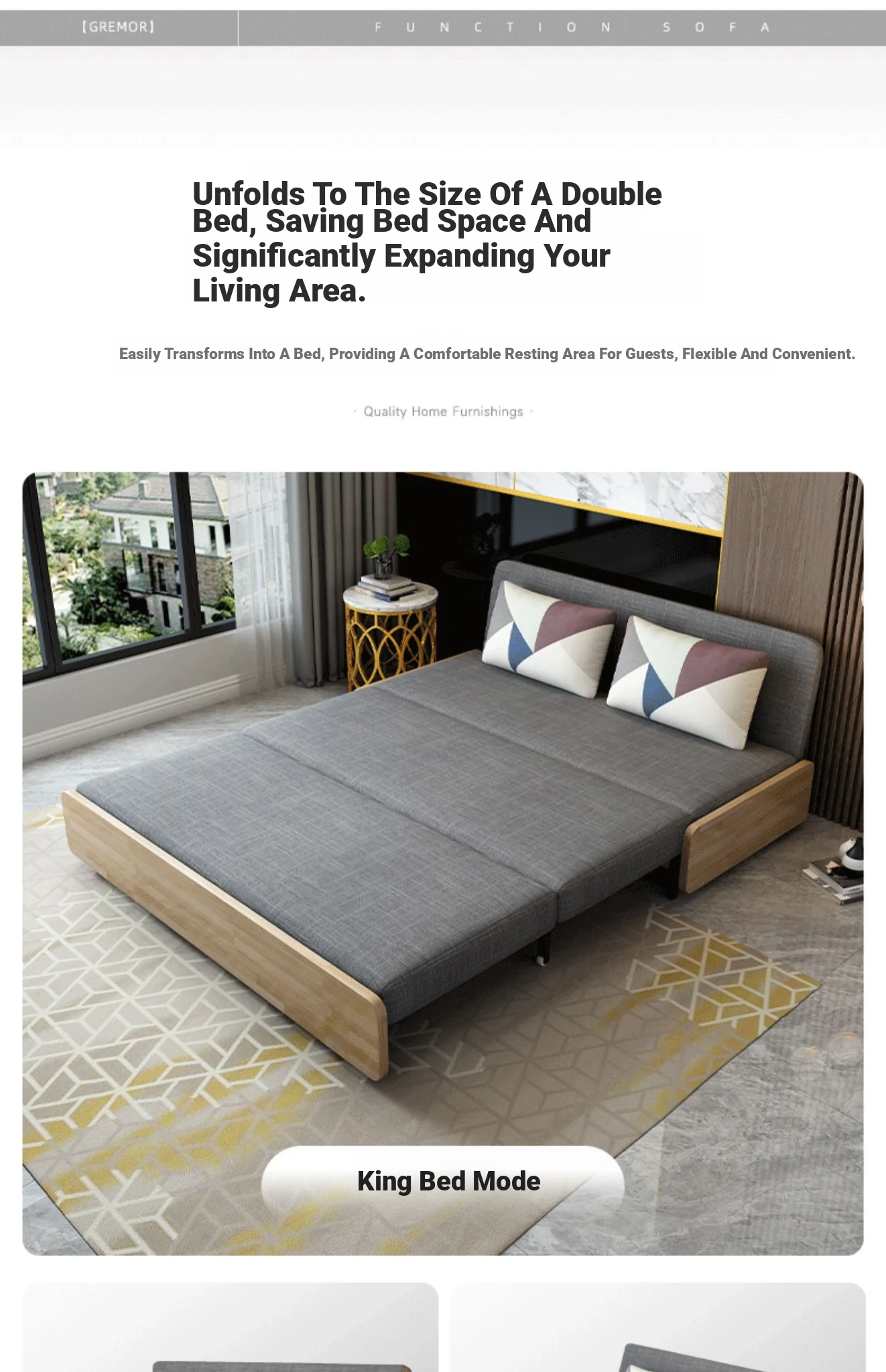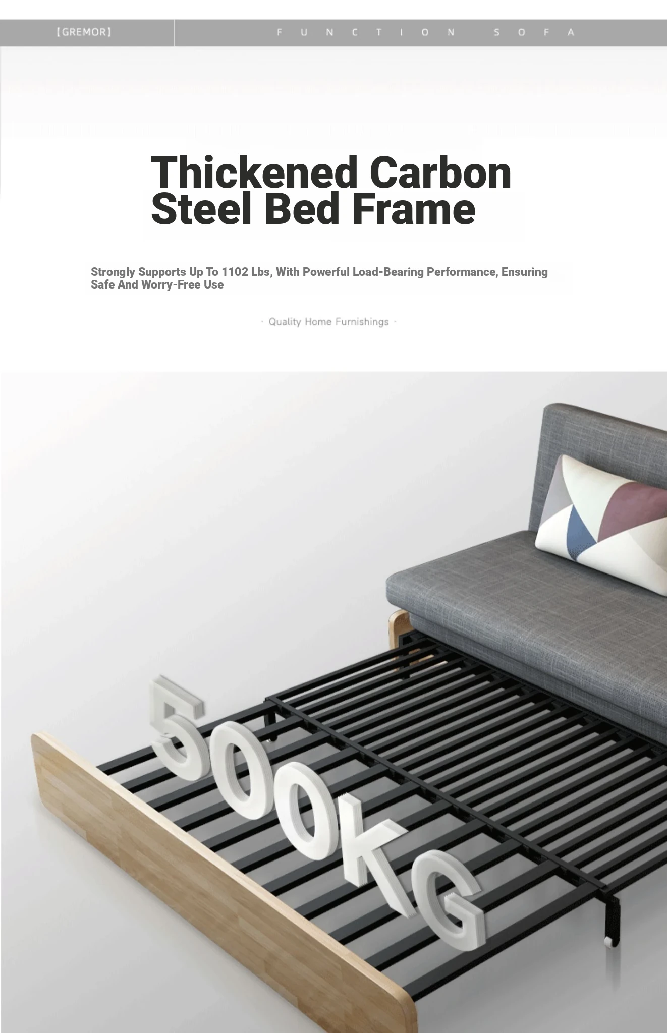GREMOR Multifunctional Solid Wood Sofa Bed - 1.5m Natural Wood Style Dual-Use Folding Bed for Living Room and Balcony, Perfect for Couples and Space-Saving Solutions!