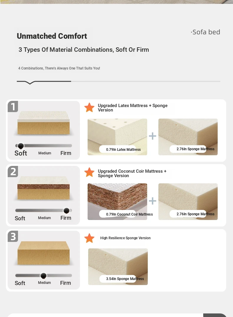 39.37 in [2.76in sponge +0.79in coconut palm] + storage
