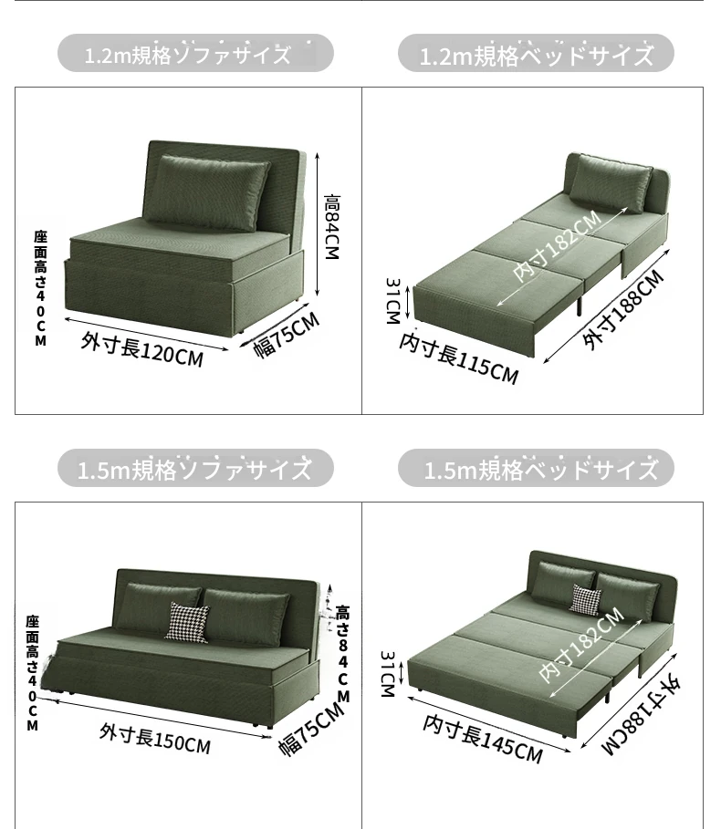 1.2メートル【7CMスポンジ+2CMココナッツファイバー】+収納
