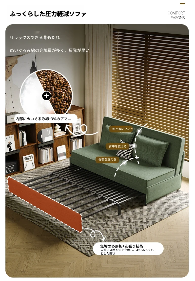 1.8メートル【7CMスポンジ+2CMココナッツファイバー】+収納