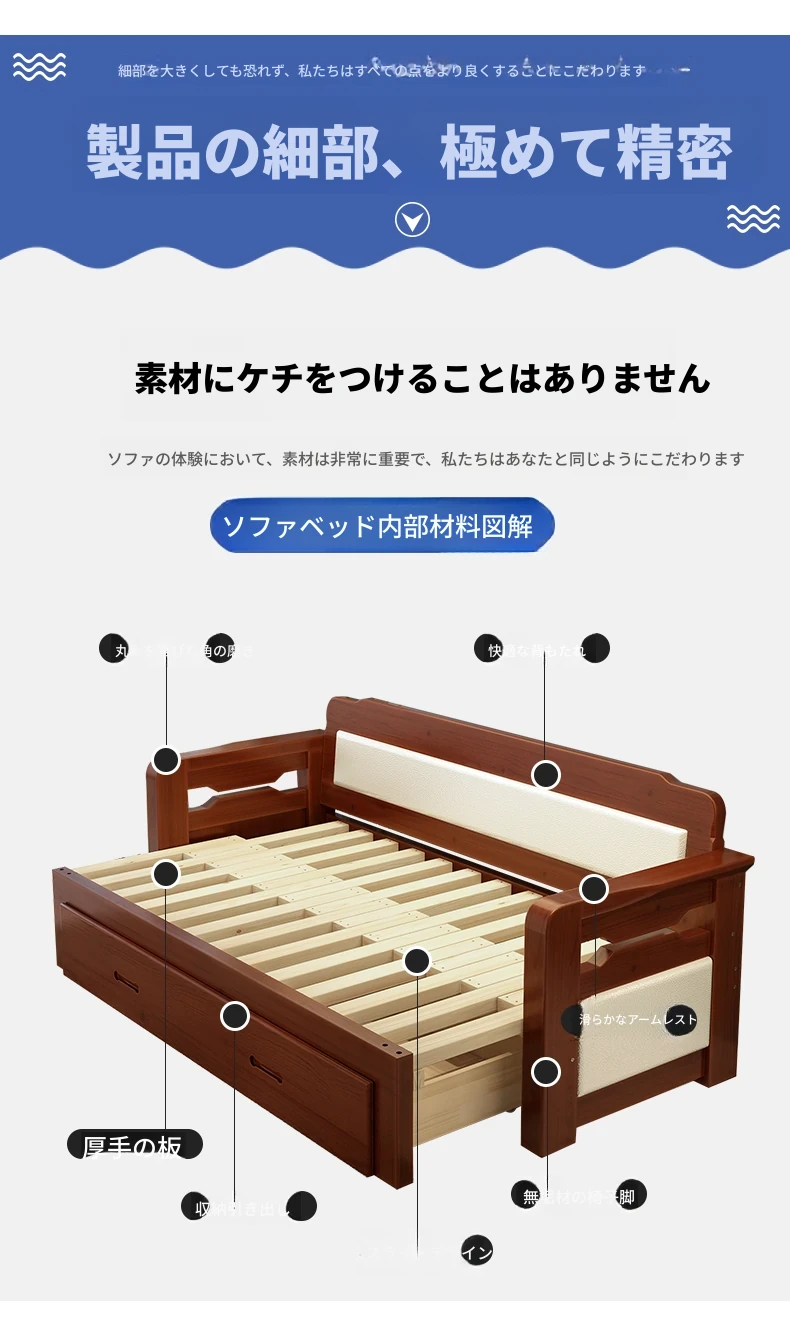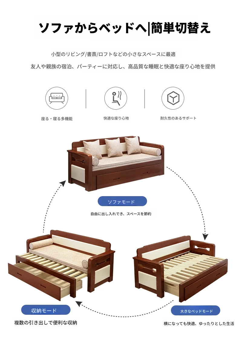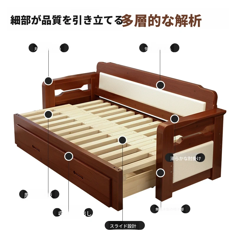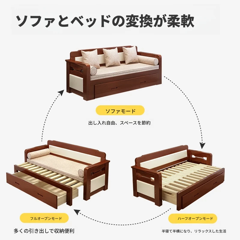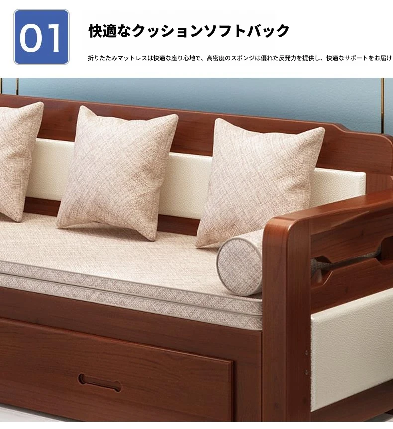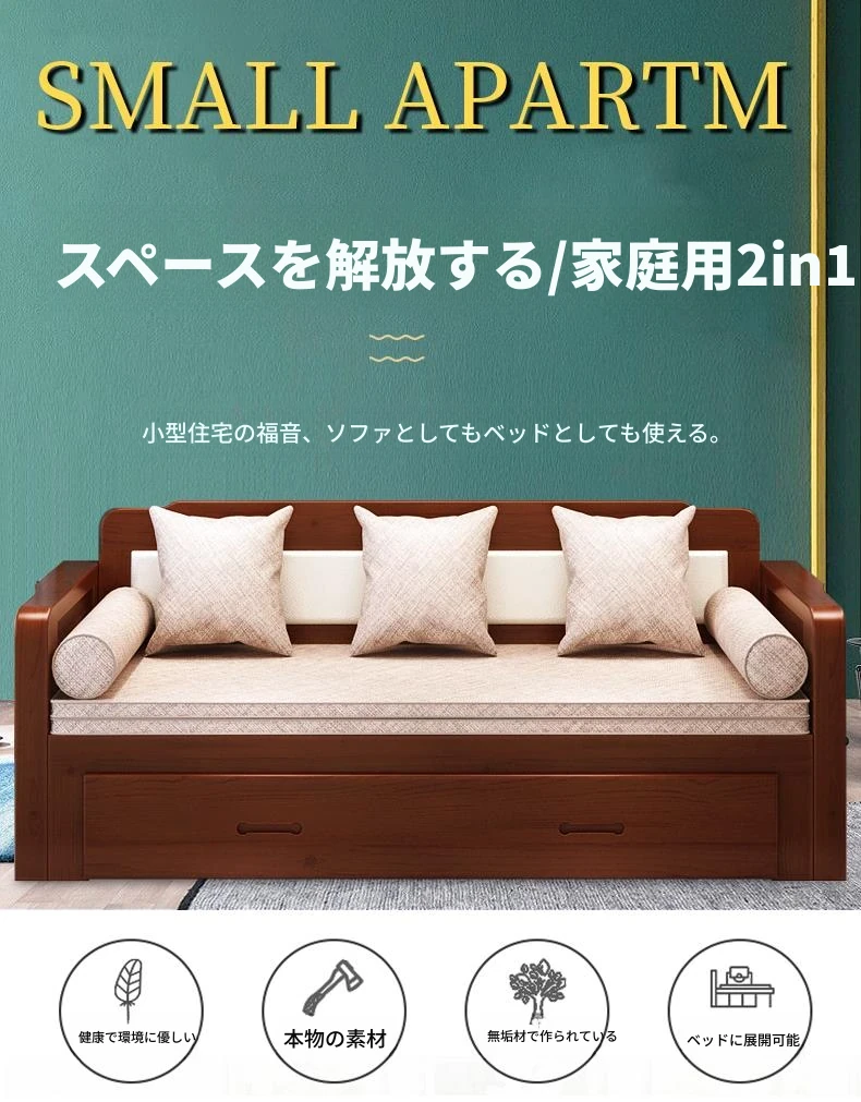 香港送料無料!折りたたみ可能な実木製ソファベッド。小型住宅に最適なデザインで、2人用の座り寝両用。リビングルームにぴったりの多機能1.5メートルサイズ!快適な空間を実現します。