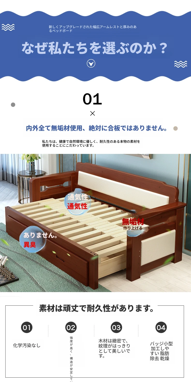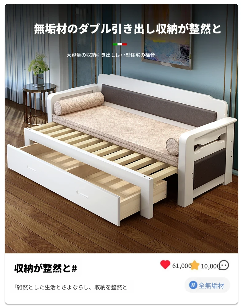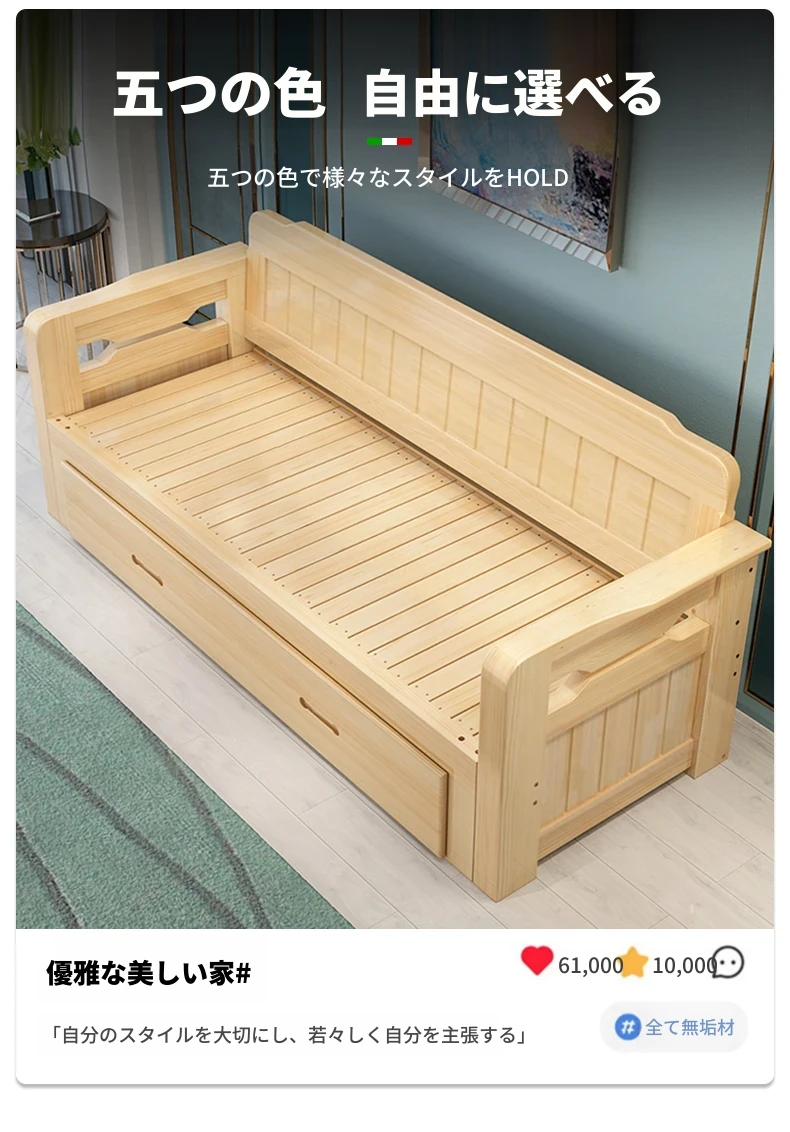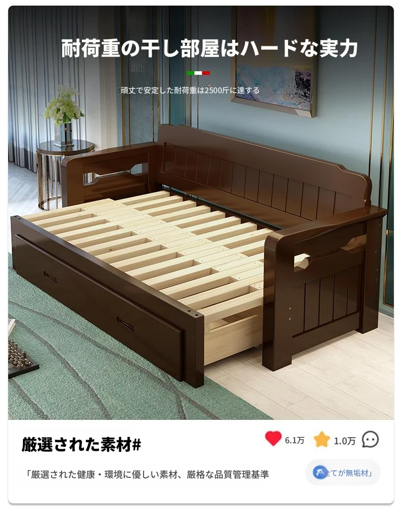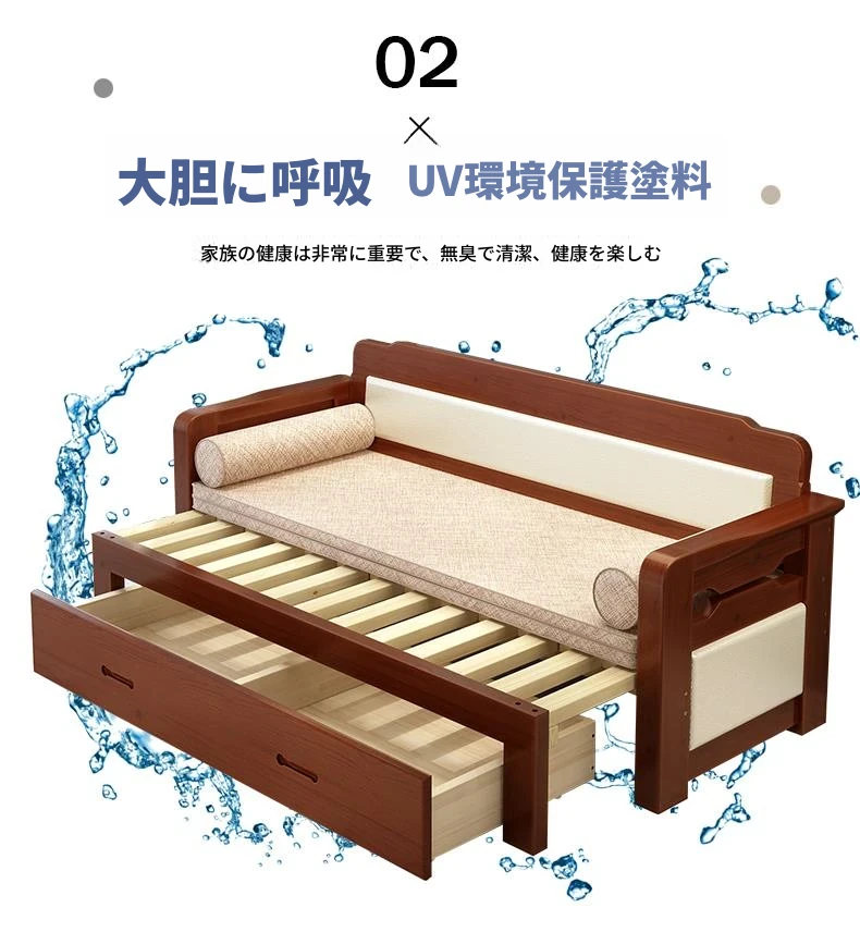 香港送料無料!折りたたみ可能な実木製ソファベッド。小型住宅に最適なデザインで、2人用の座り寝両用。リビングルームにぴったりの多機能1.5メートルサイズ!快適な空間を実現します。