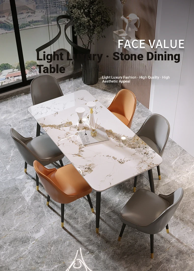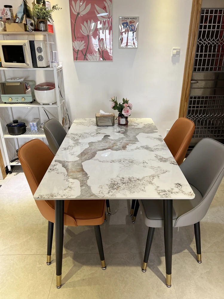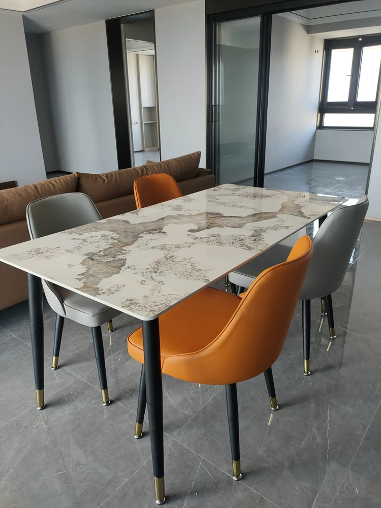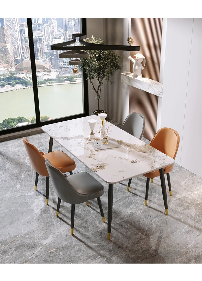 Style 2 Light luxury orange leather table chair (2 sets)
