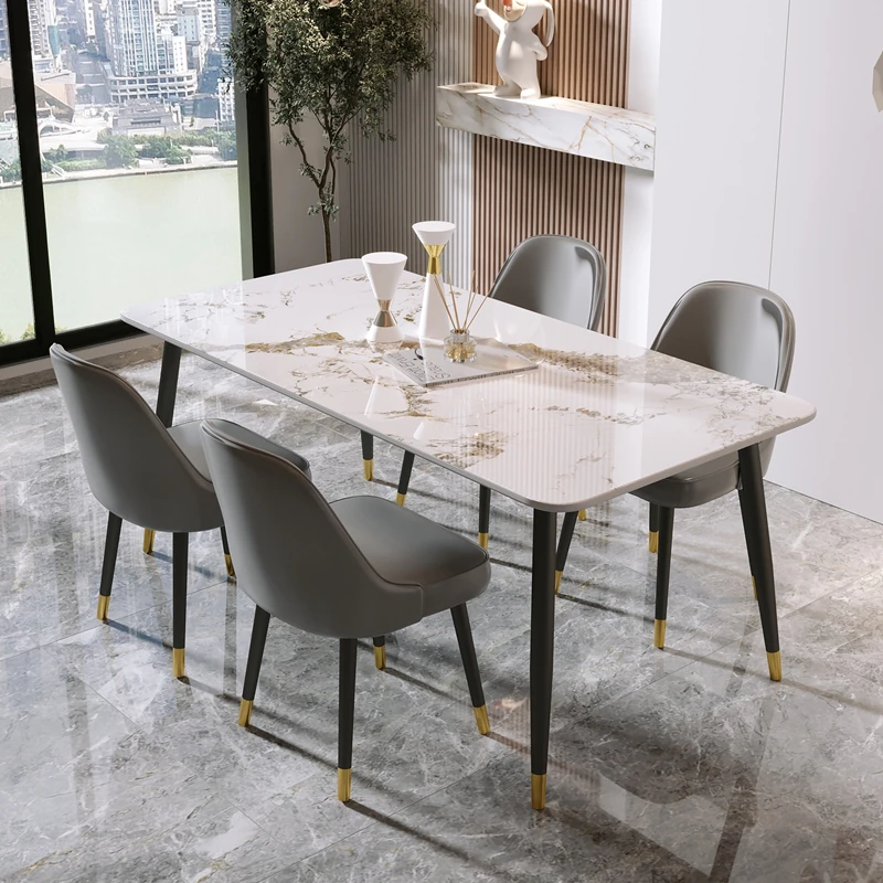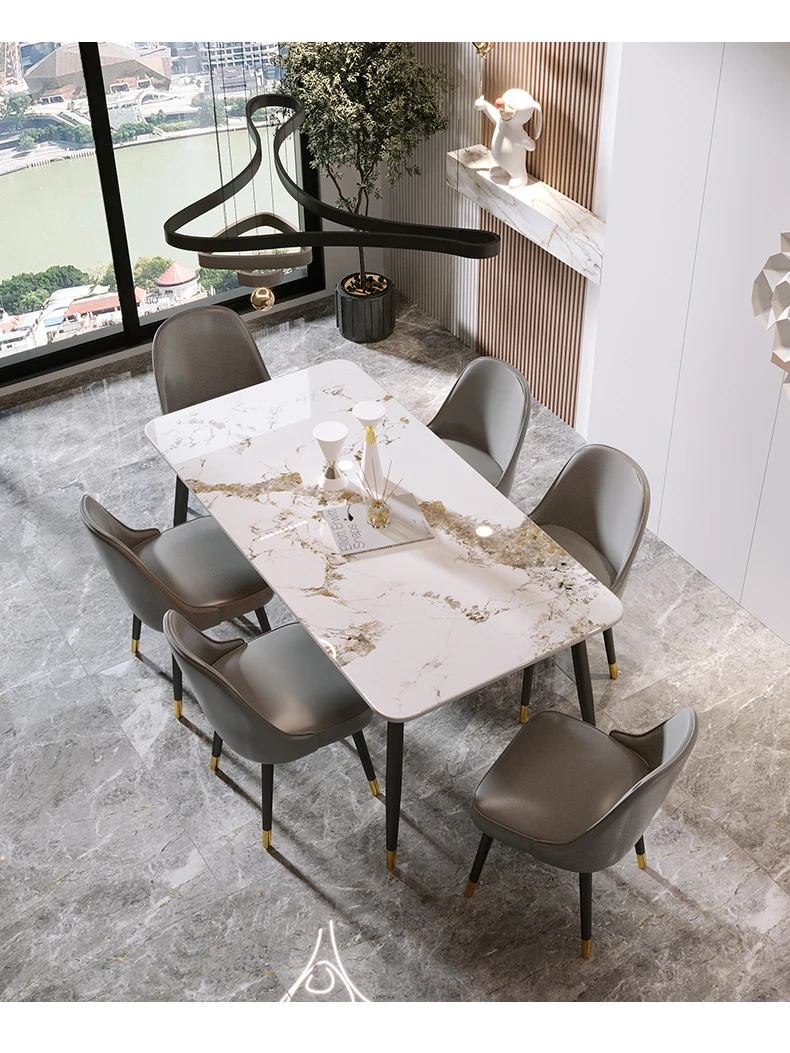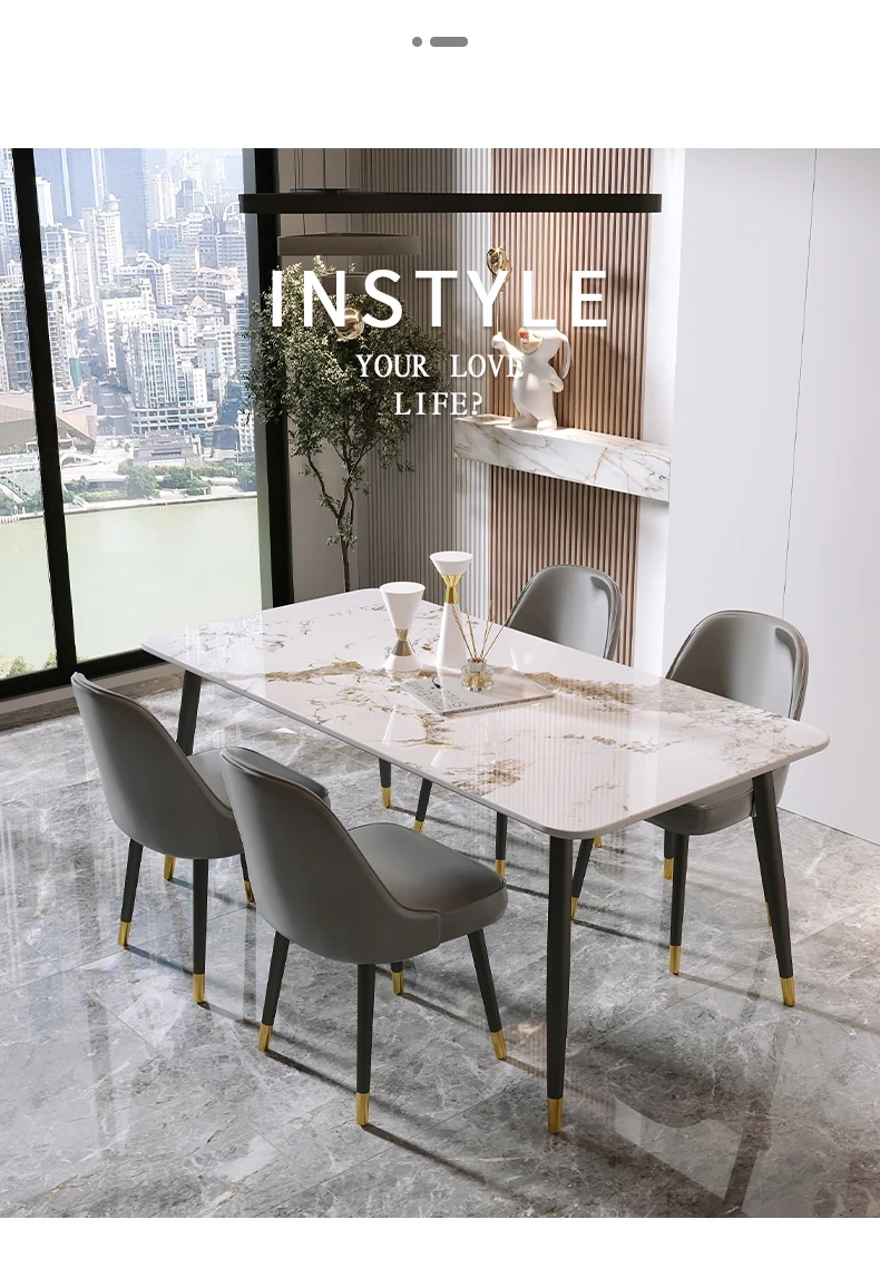 Style 1 Light luxury grey leather table chair (2 sets)