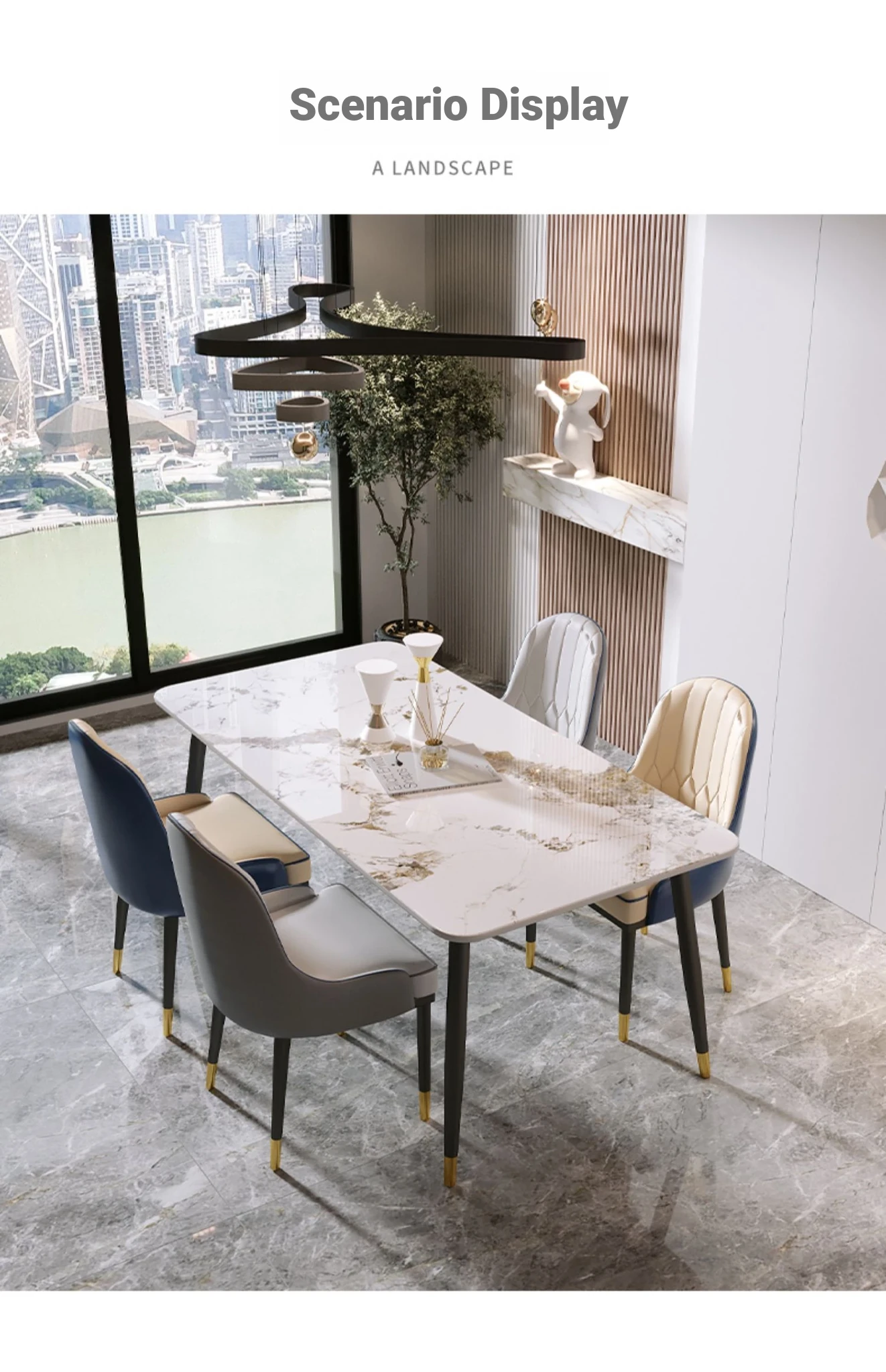 Italian Glossy Luxury Stone Pandora Dining Table and Chair Set – Chic Modern Minimalist Design for Small Spaces, Perfect for Upscale Home Décor
