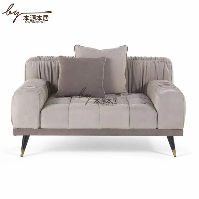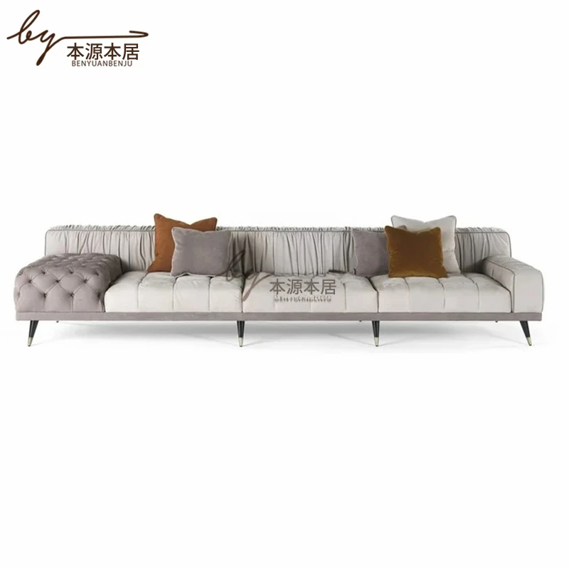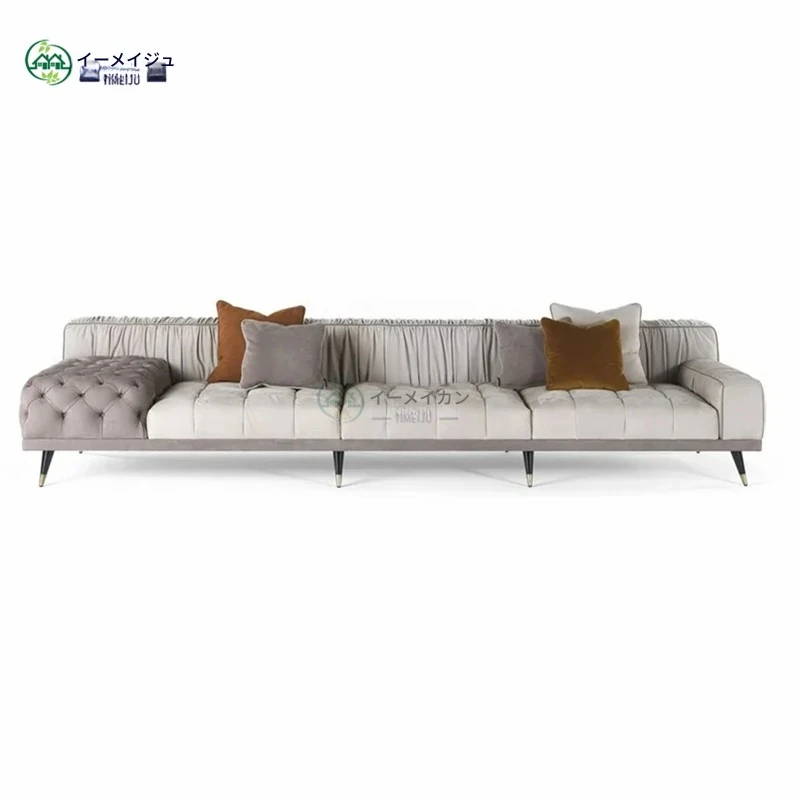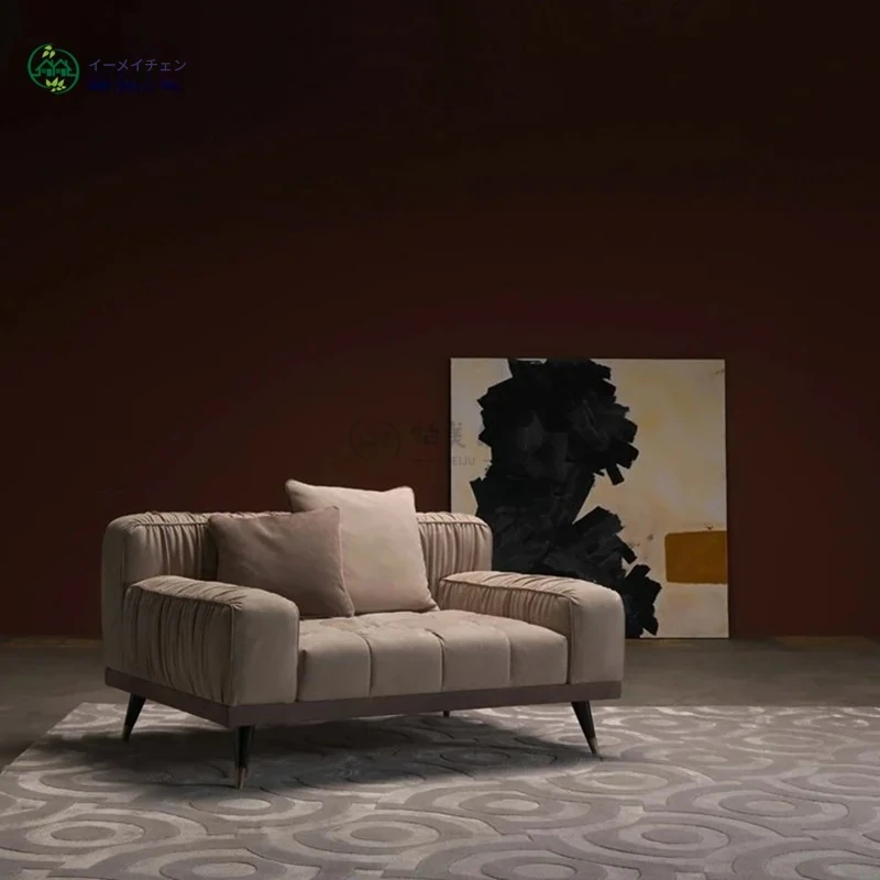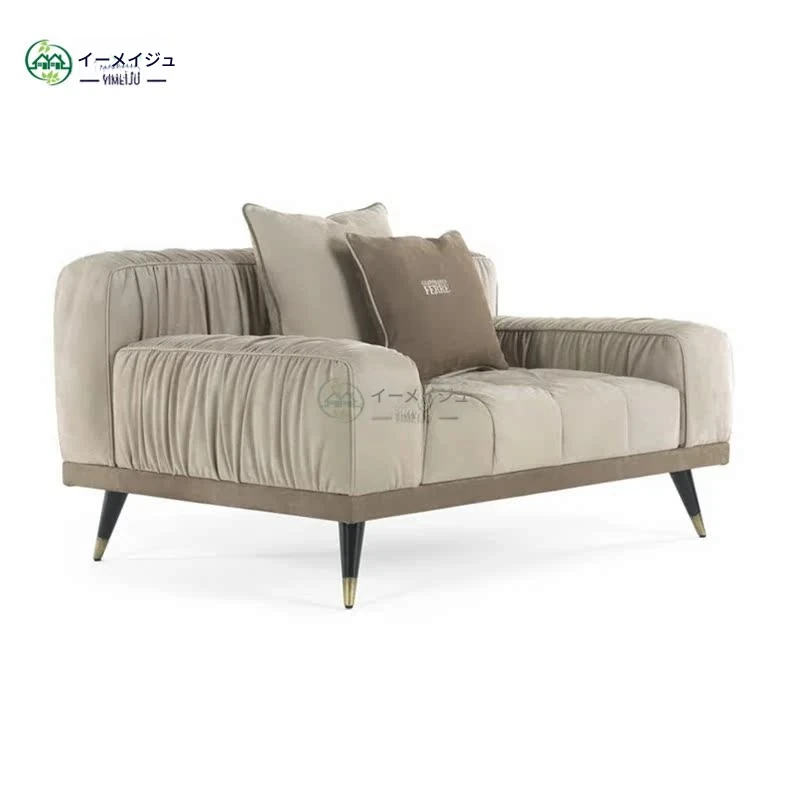 イタリアンラグジュアリーのレザー&ファブリックデザイン!モダンミニマリスト向けの高級ソファ、リビングルームやヴィラ、ホテルロビーのインテリアに最適。洗練されたスタイルで心地よい空間を演出します!