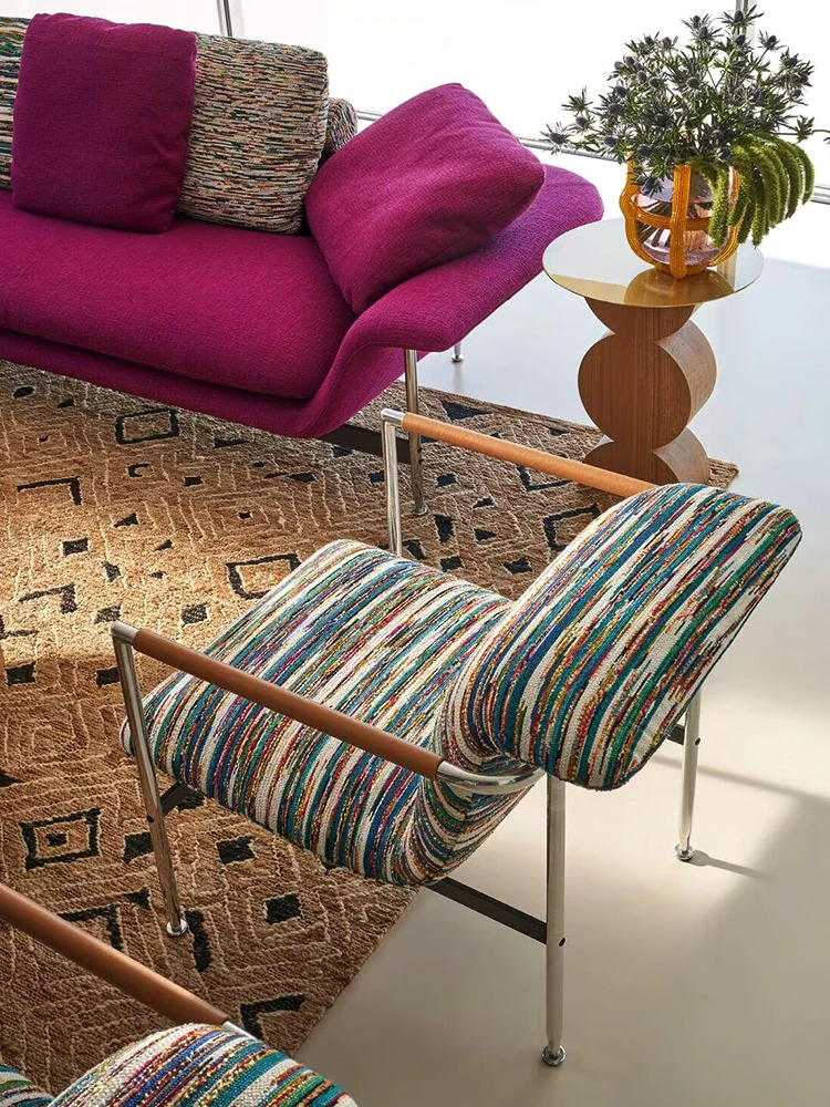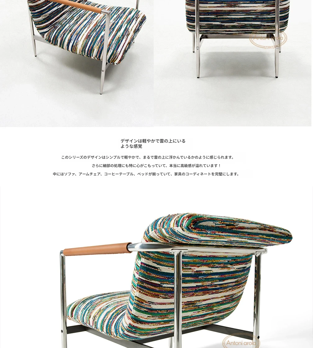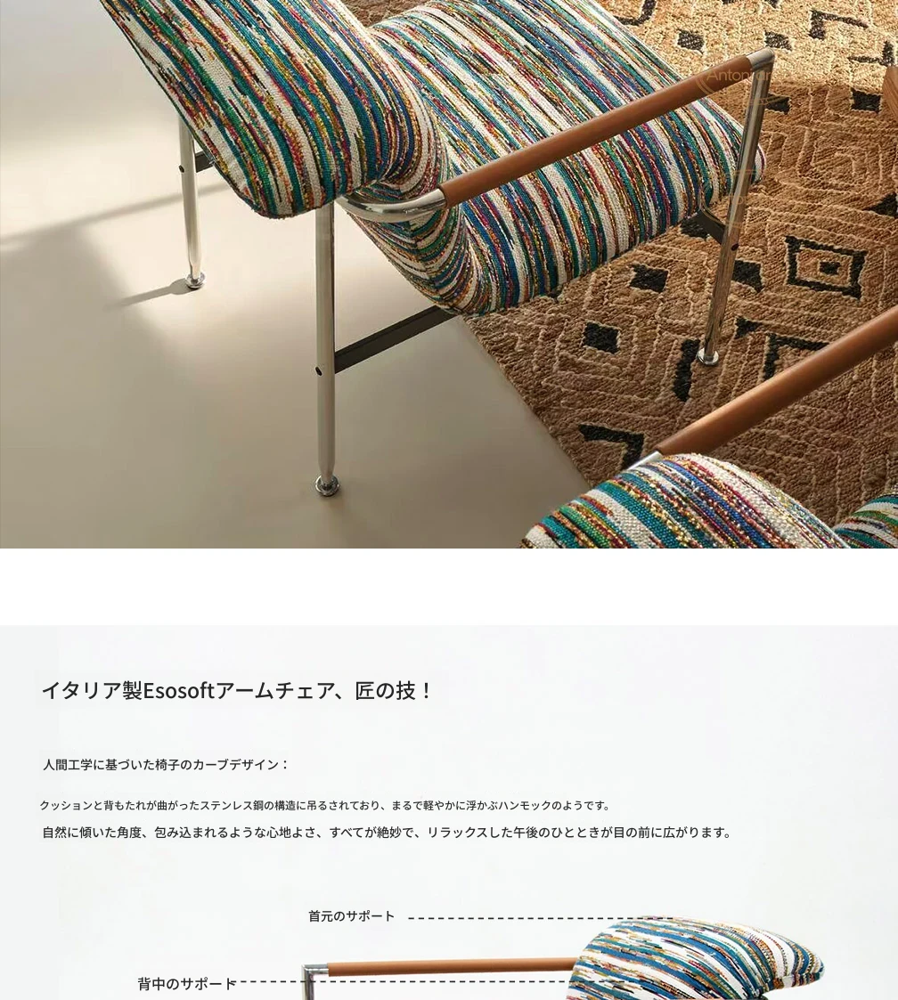イタリアンミニマリストデザインのリラックスソファチェア|モダンな一人用|小さな空間にぴったりなモジュール式クッション|快適な毛毛虫スタイル|おしゃれなリビングに最適!