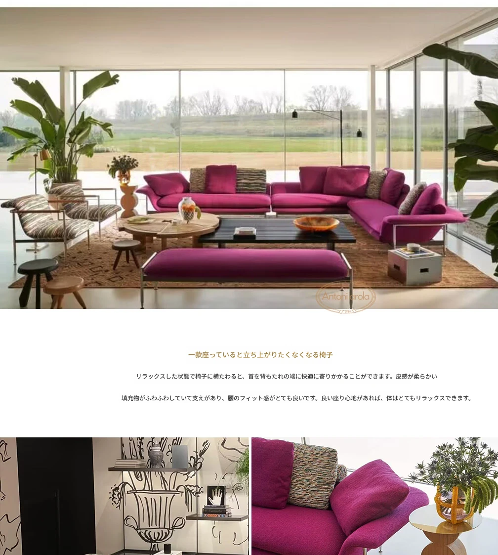 北欧モダンミニマリストスタイルのラグジュアリーソファ - ゆったりとした多人数用、リラックスできる超ソフトなファブリックソファ。現代的なデザインで、お部屋をスタイリッシュに演出します。