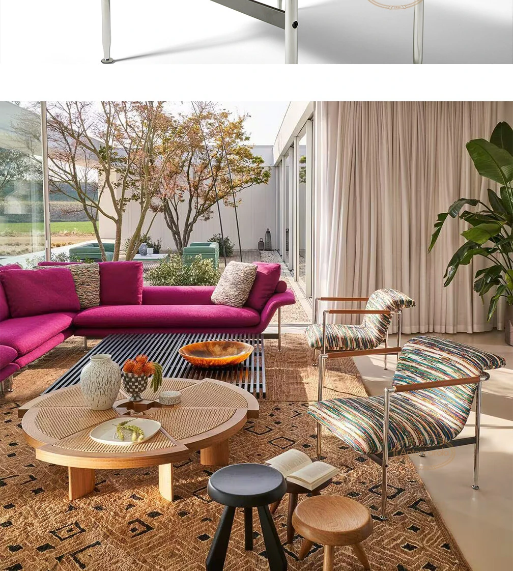 クリームカラーのファブリックソファ - イタリアンミニマリズムの極み、現代的なシンプルデザイン!直線的なスタイルが魅力のデザイナーズ中古民宿向け、アーチ型のユニークなフォルムでおしゃれなリビングを演出します。