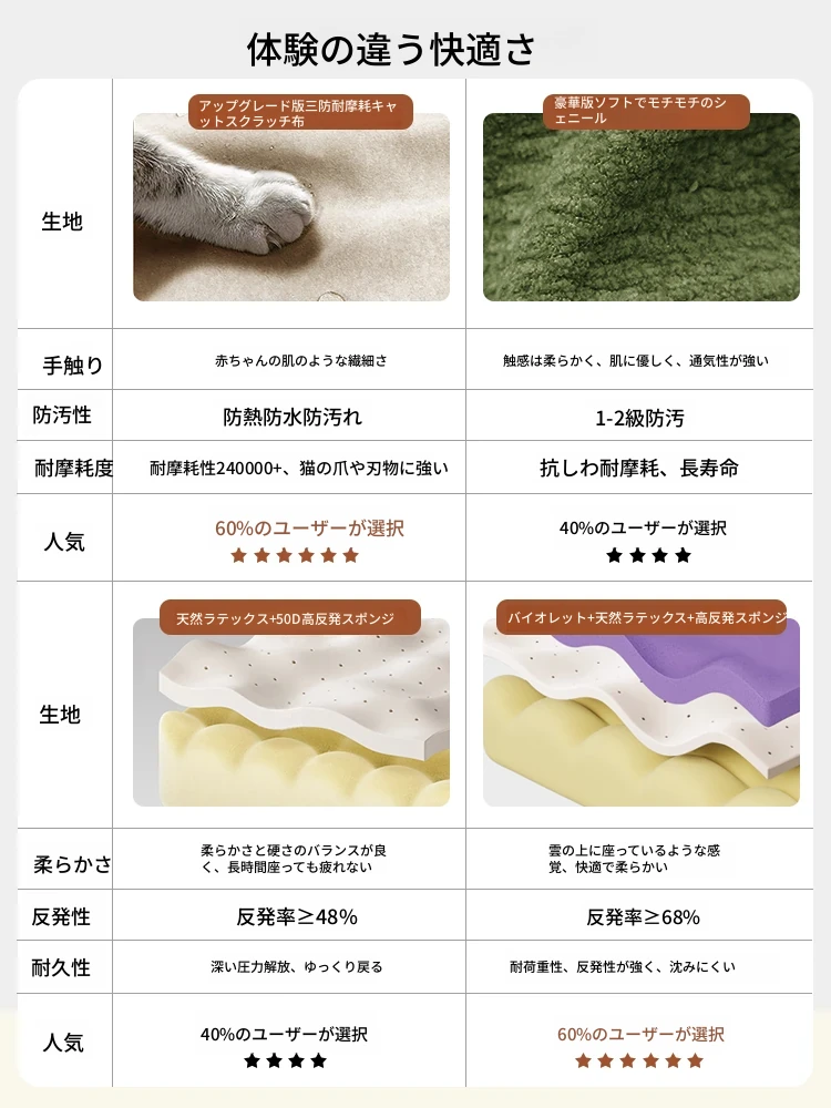 紫羅蘭ウレタン+天然ラテックス+50D高反発ウレタン【三防耐磨猫抓布】