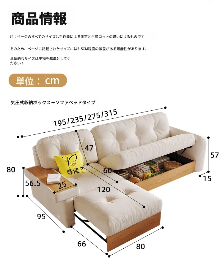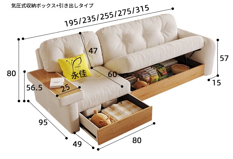 3.15メートル【底部収納ボックス+ソファベッドの組み合わせ】