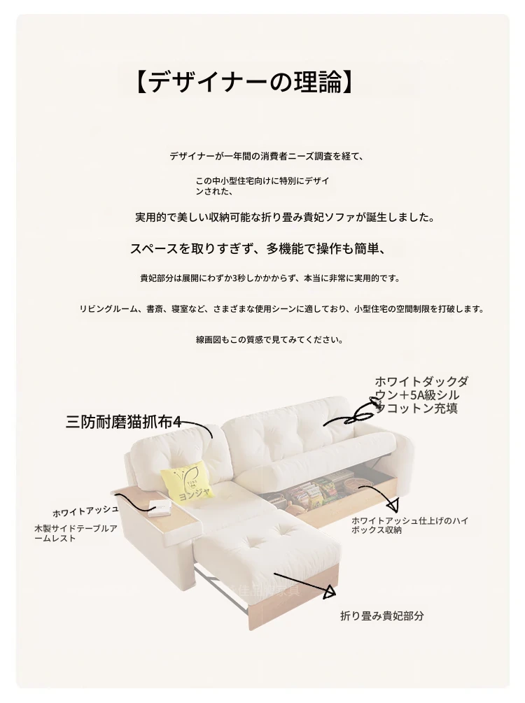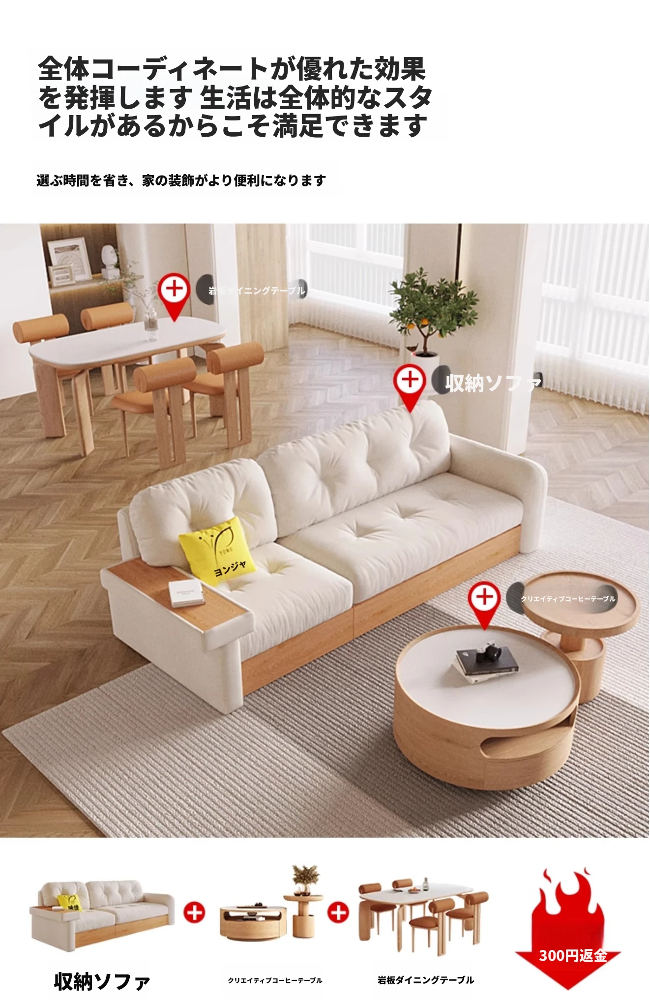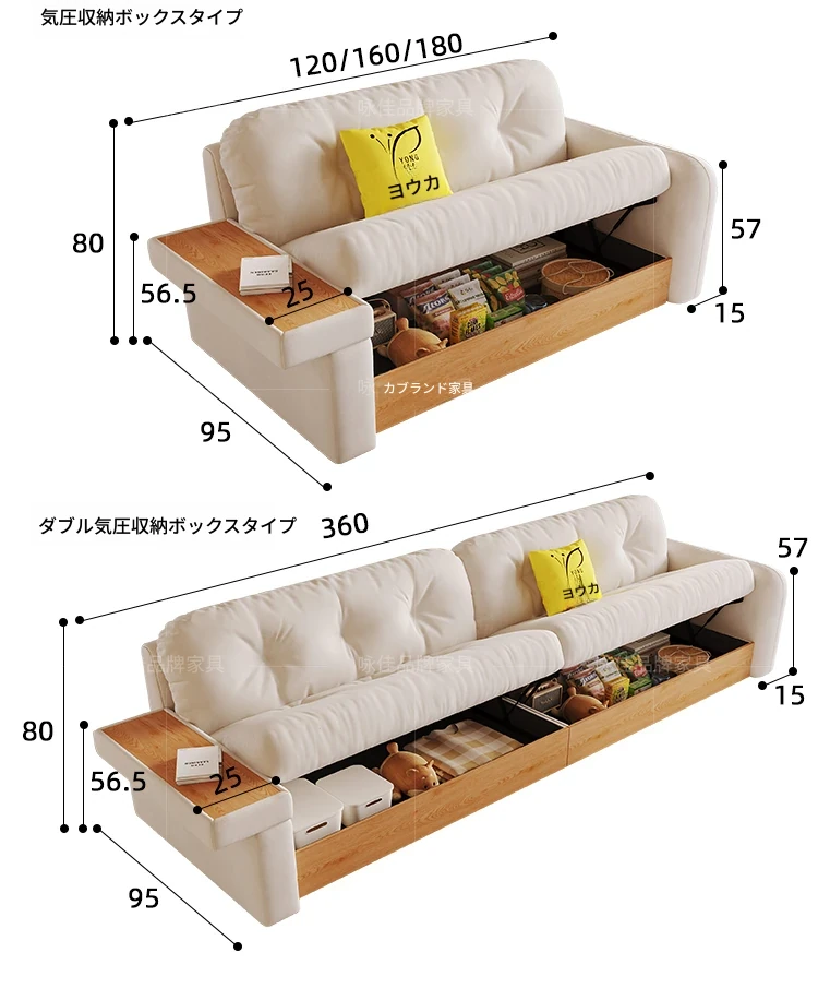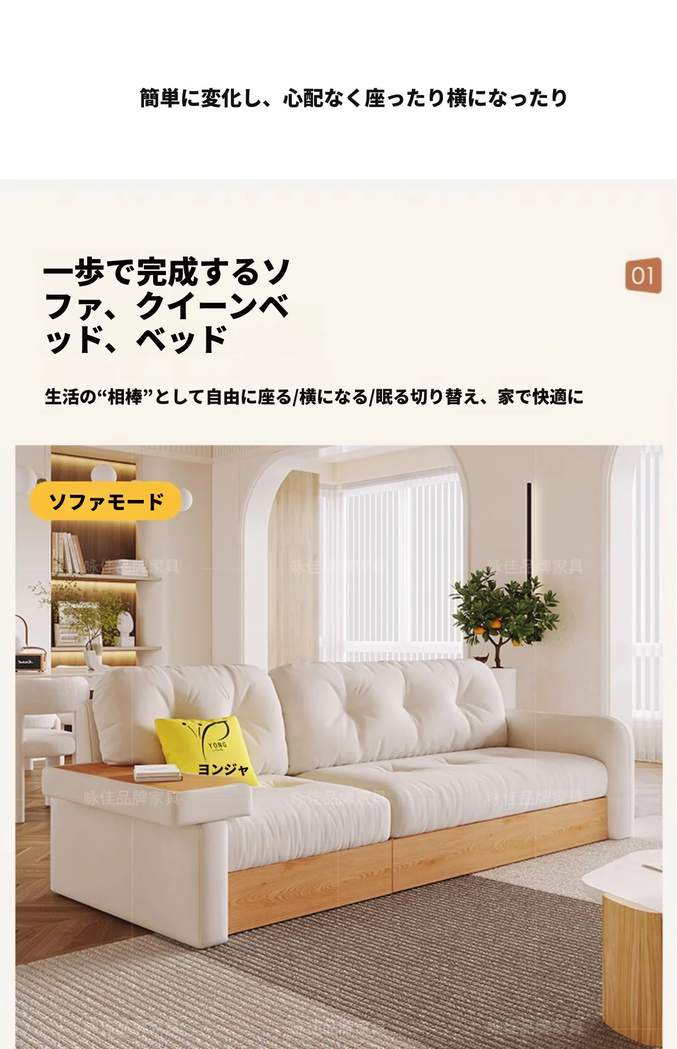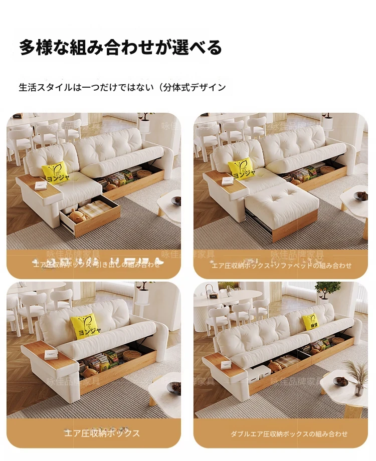 1.95メートル【底部収納ボックス+ソファベッドの組み合わせ】