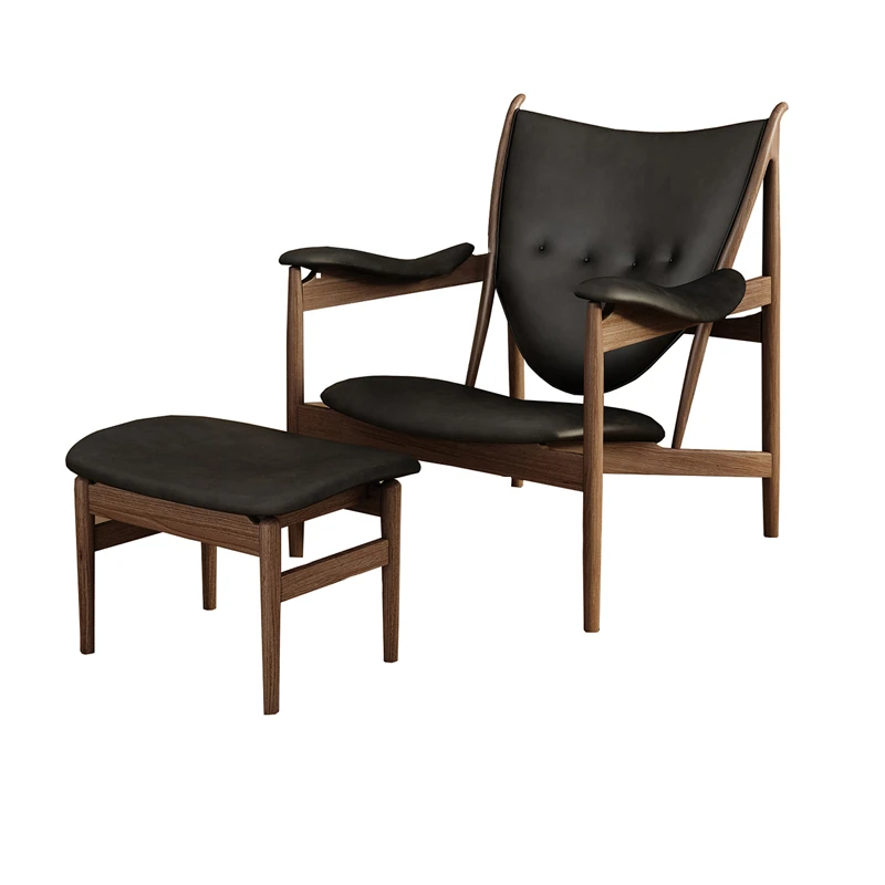 (アームチェア+オットマン)+北米FAS等級のブラックウォールナット(輸入1.8mm厚のトップグレードナパ革)