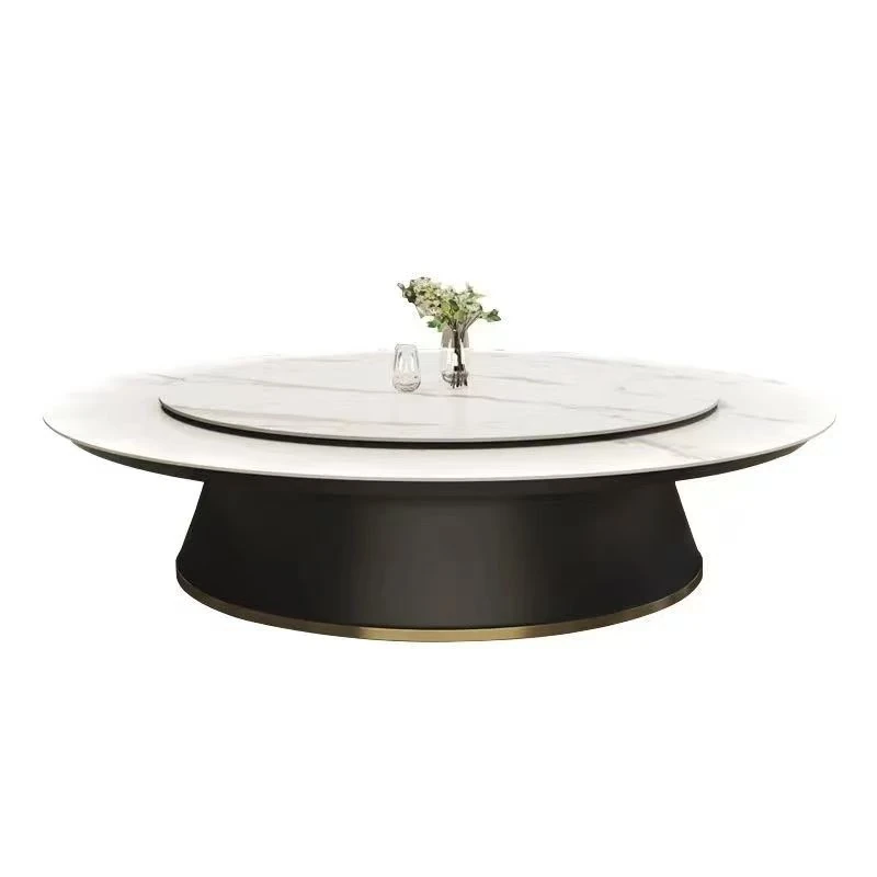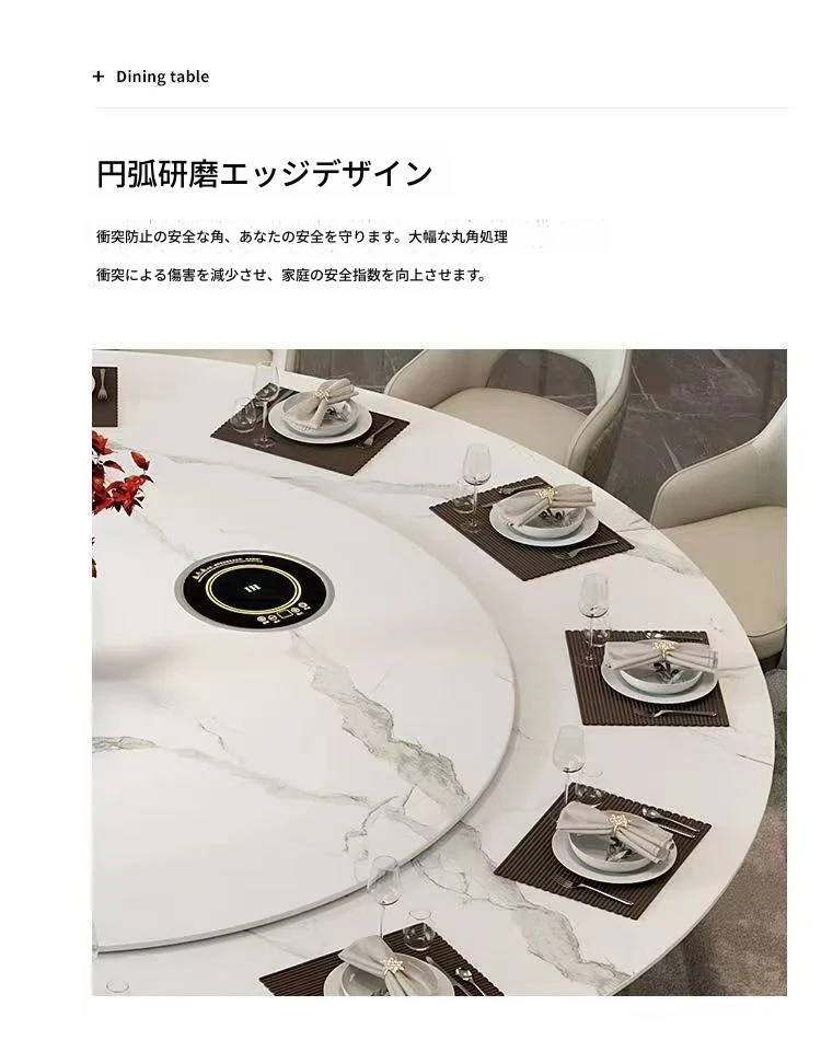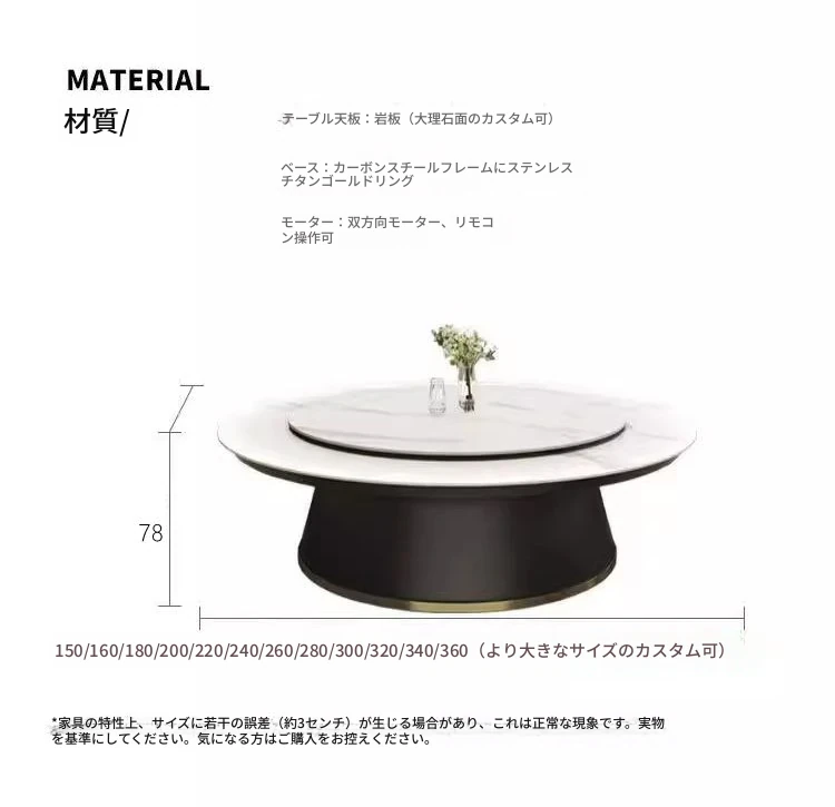 3.6メートル接続岩板ダイニングテーブル【電動回転盤】