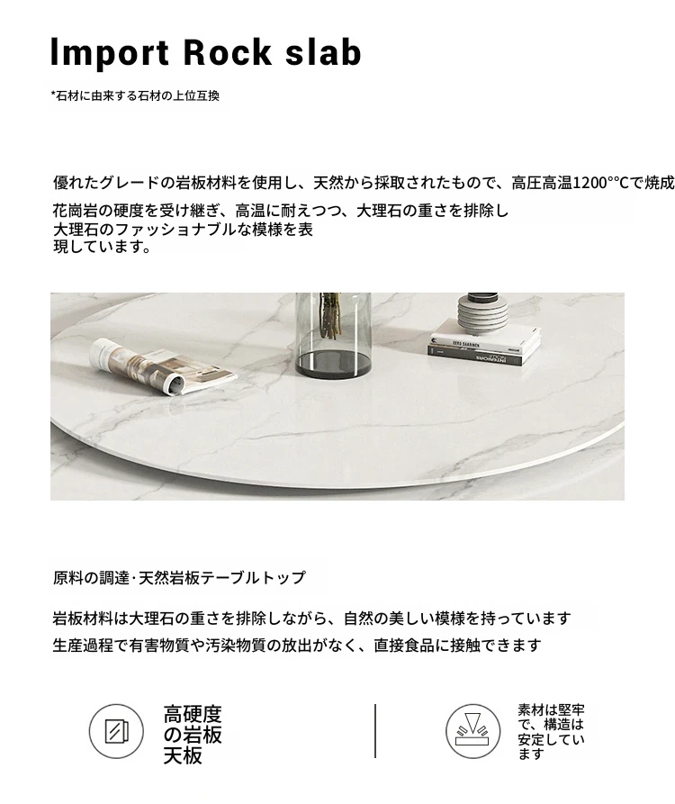 1.8メートル接続岩板ダイニングテーブル【手動回転盤】