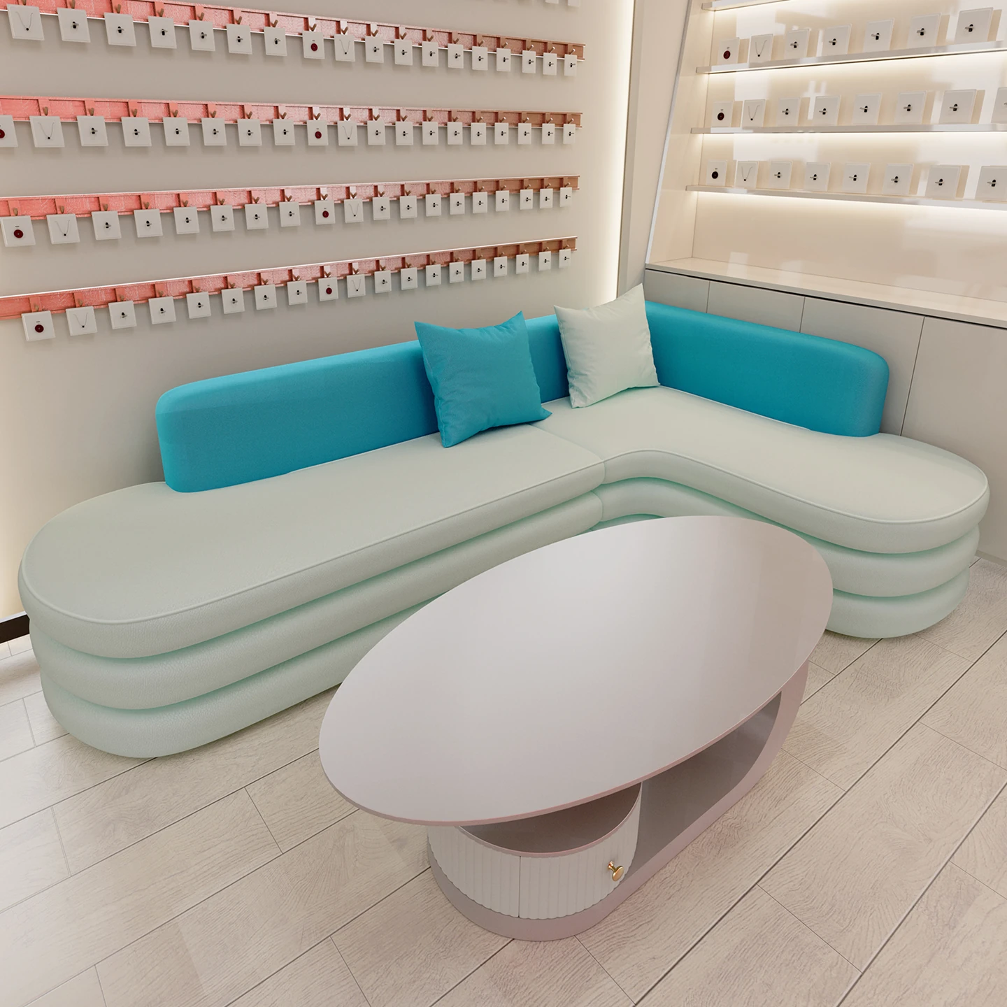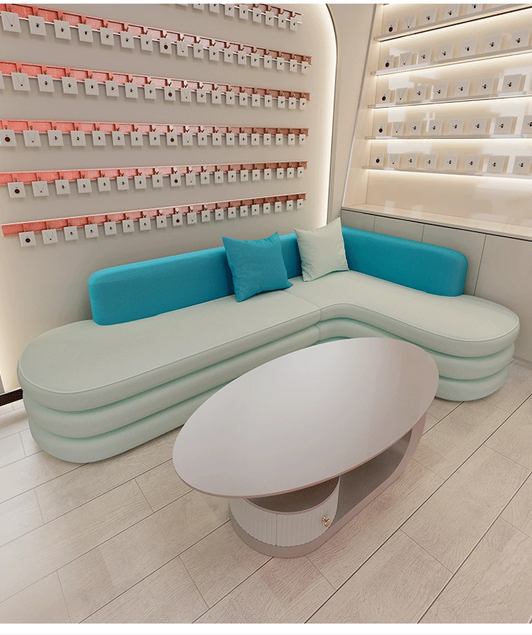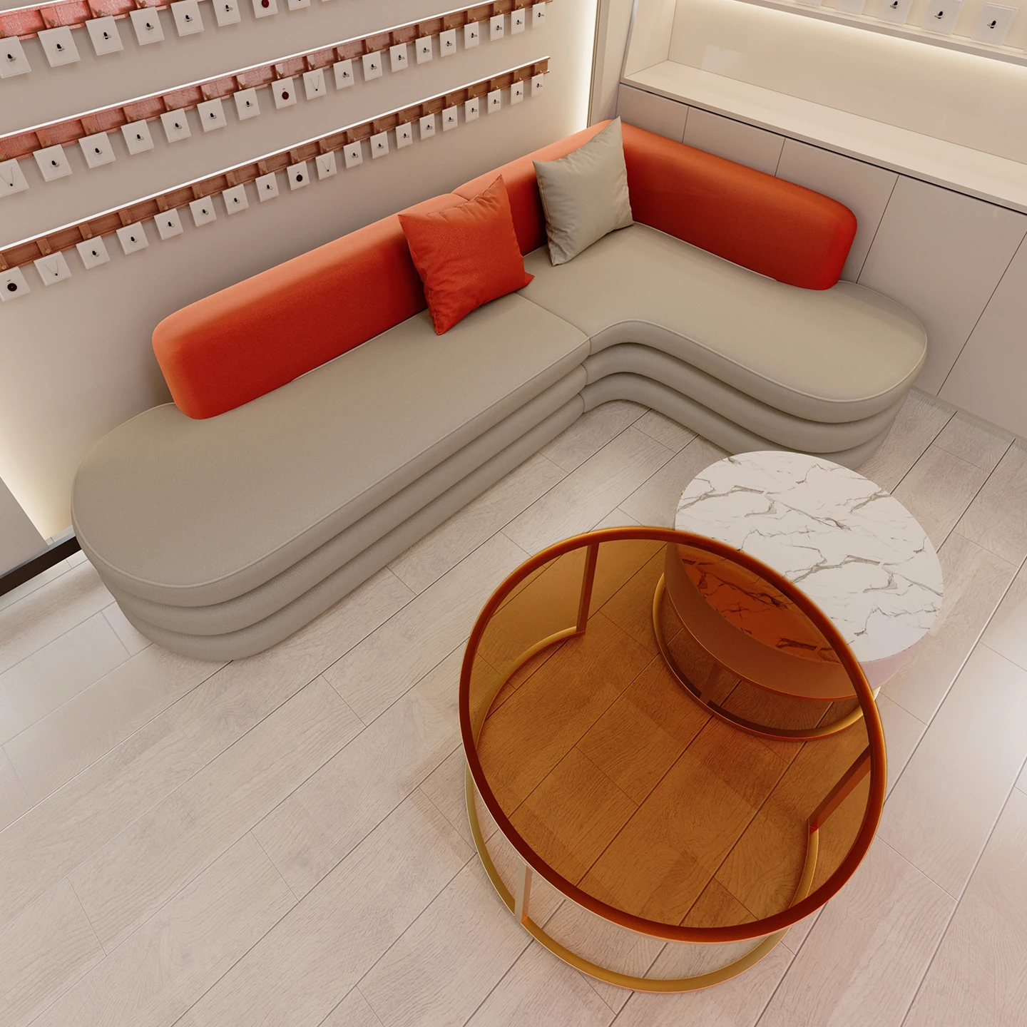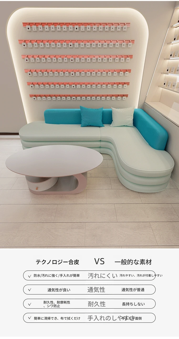 美容院向けL字型コーナーソファ|ホテルロビーでの接客・休憩に最適な小型7字型ソファ|快適でスタイリッシュなデザインで、リラックスしたひとときを提供します!