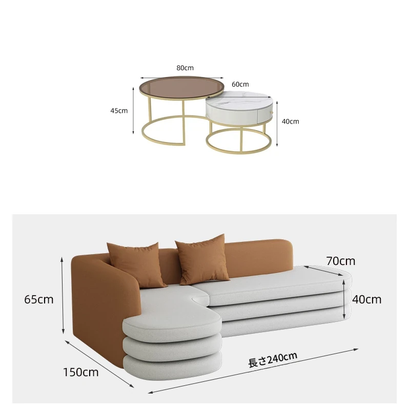 長さ2.4メートル 幅1.5メートル+コーヒーテーブル グレー+オレンジ