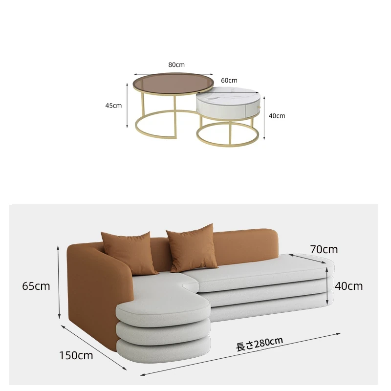 長さ2.8メートル 幅1.5メートル+コーヒーテーブル グレー+オレンジ
