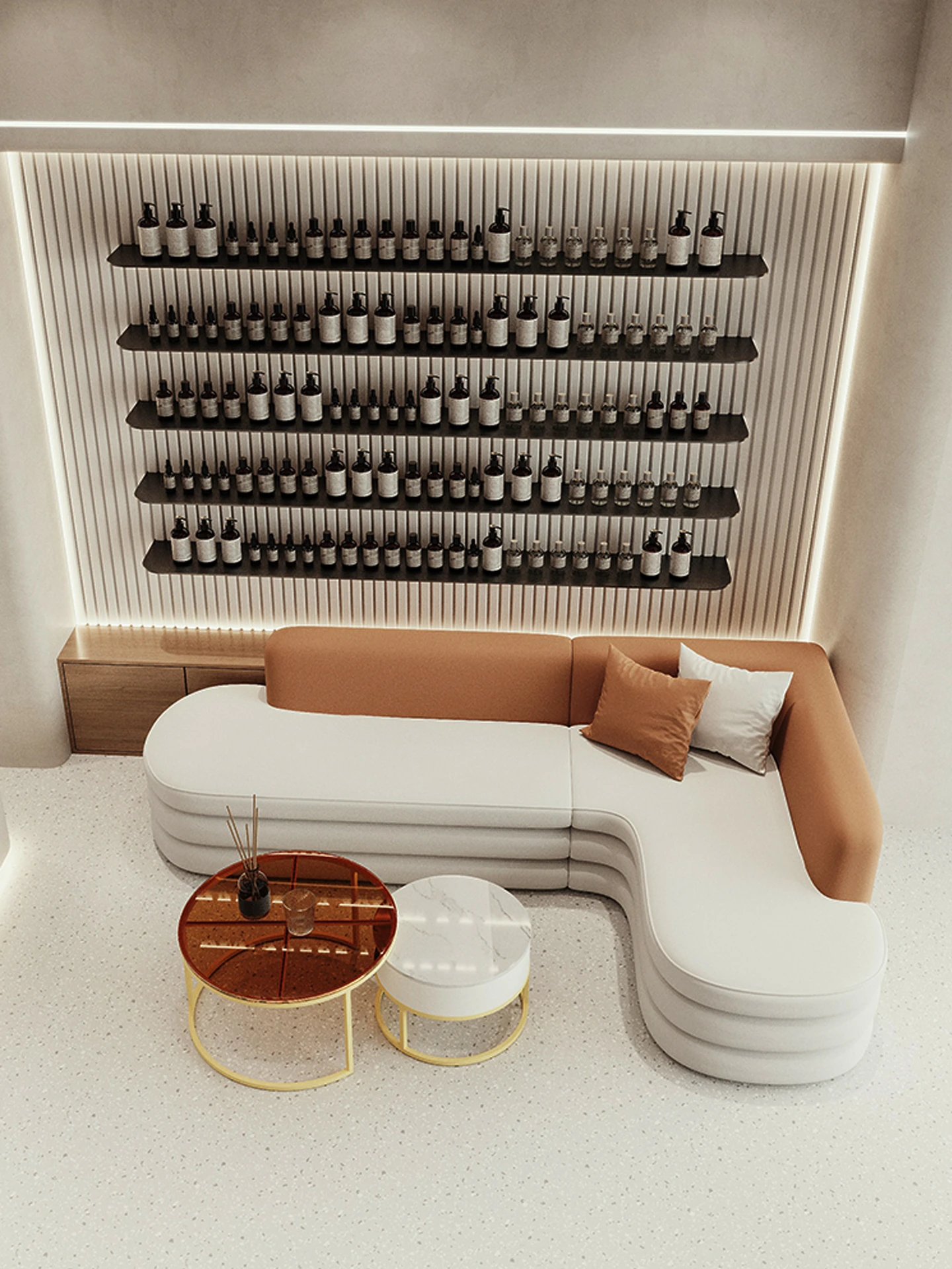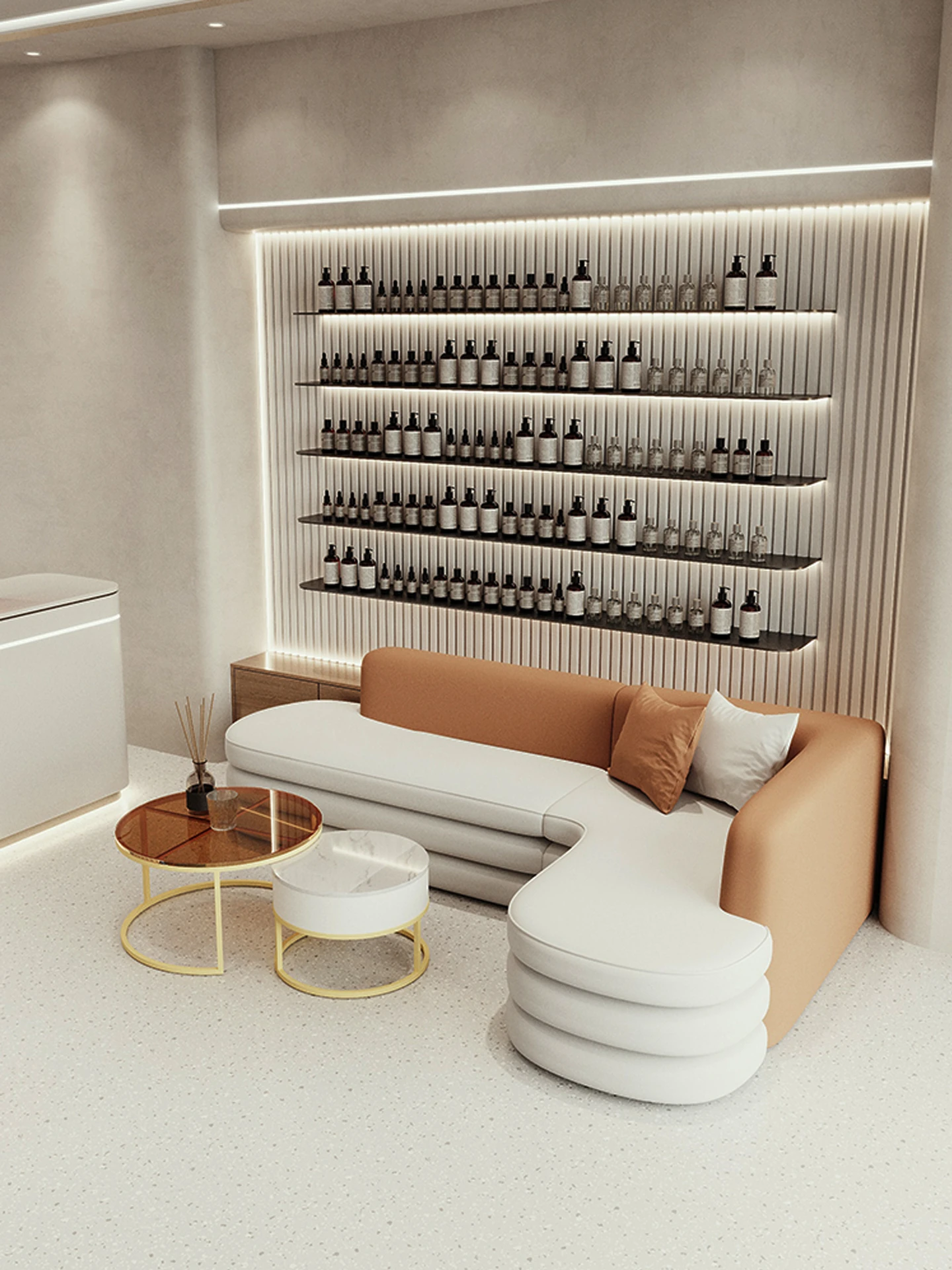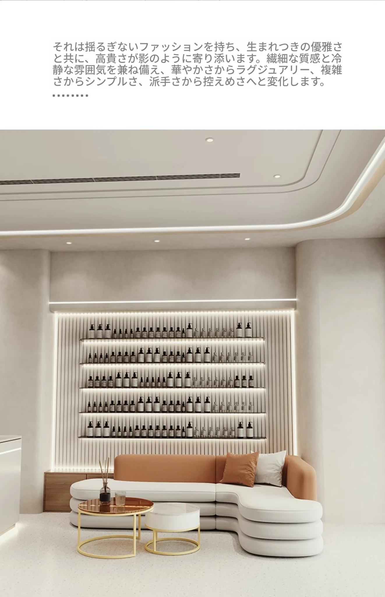 L型美容院専用コーナーソファ - 独創的な7字型デザインで、狭いスペースにもぴったり!快適な休息エリアを演出し、ゲストをおもてなし。おしゃれで機能的な接客空間を実現します!