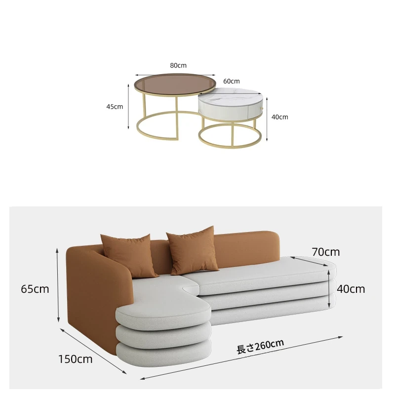 長さ2.6メートル 幅1.5メートル+コーヒーテーブル グレー+オレンジ