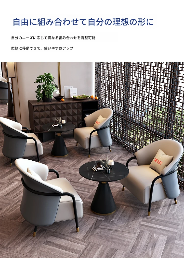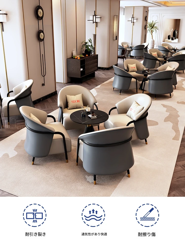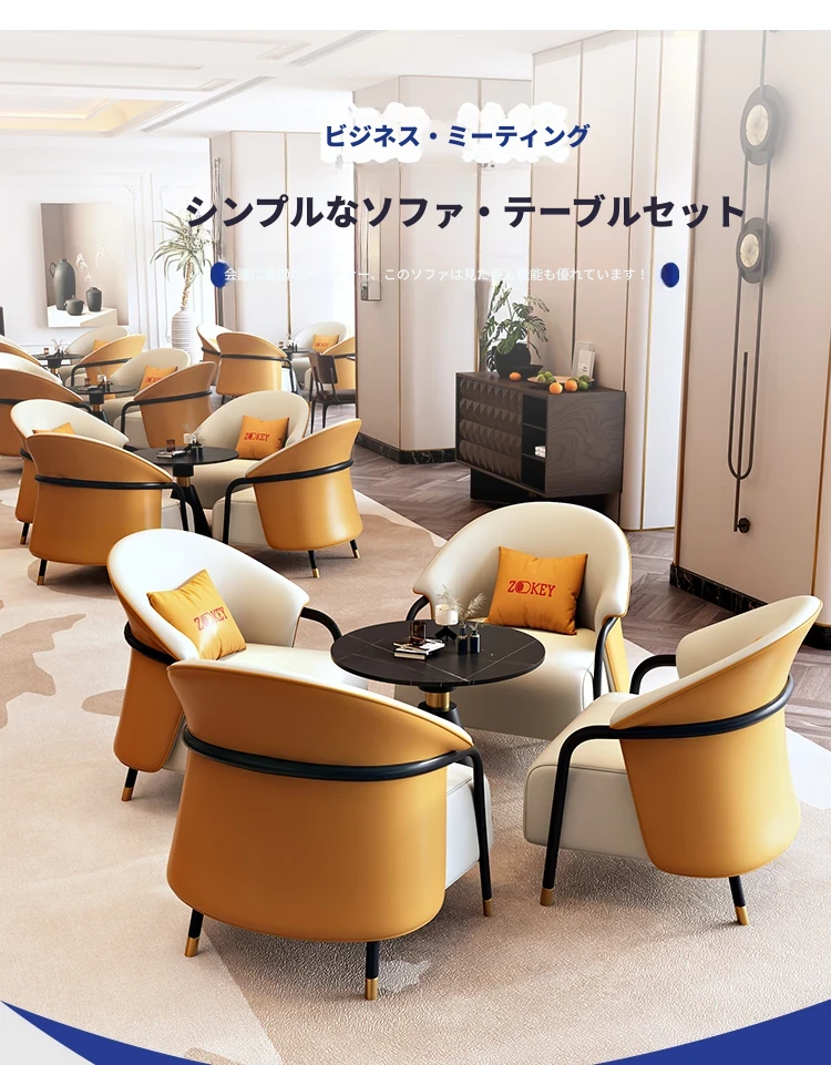 ラグジュアリーなホテルのロビーやオフィス、サロン、販売所に最適な接客用ソファ&テーブルセット。おしゃれで快適な空間を演出し、大切なお客様をお迎えします。あなたのビジネスを一段と引き立てるアイテムです!