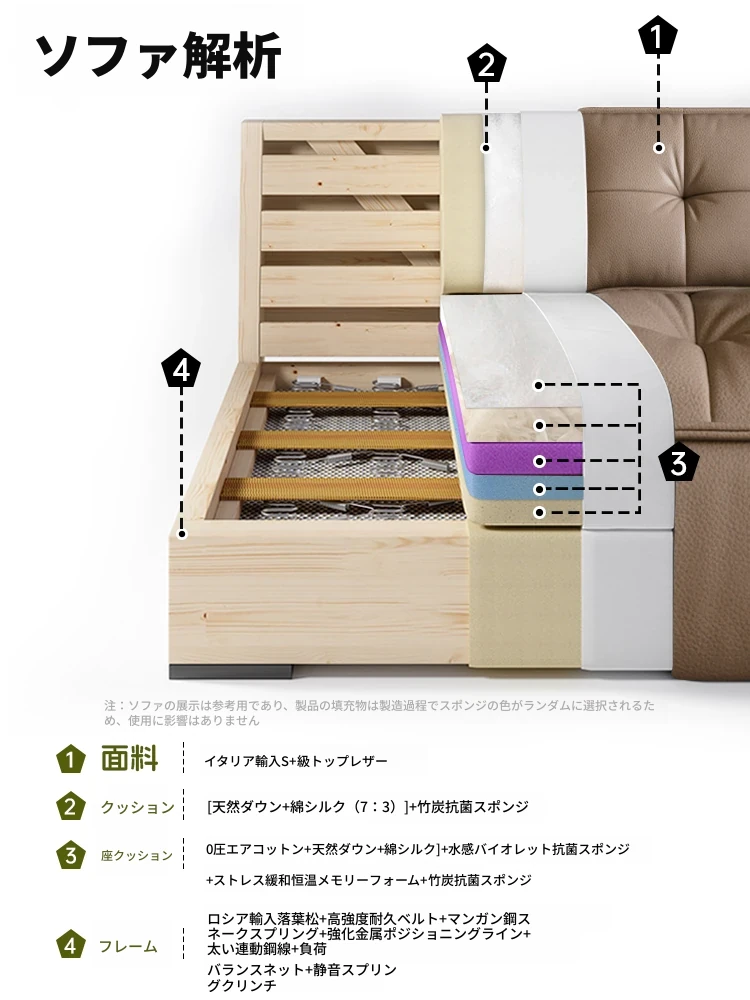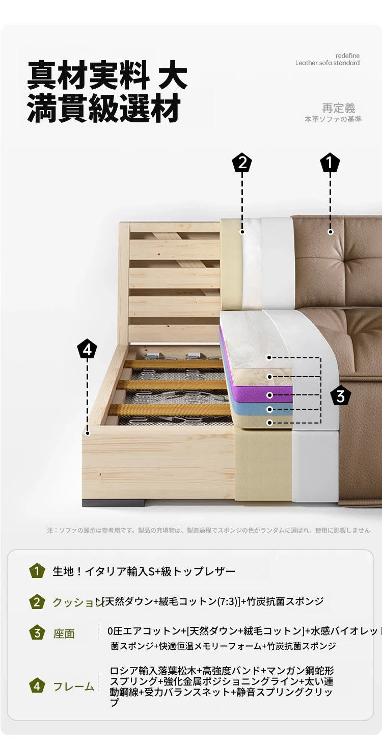 エクスクルーシブ版-接触面 进口S+級肉感加厚頭層牛皮【無垢材フレーム 加厚木材】